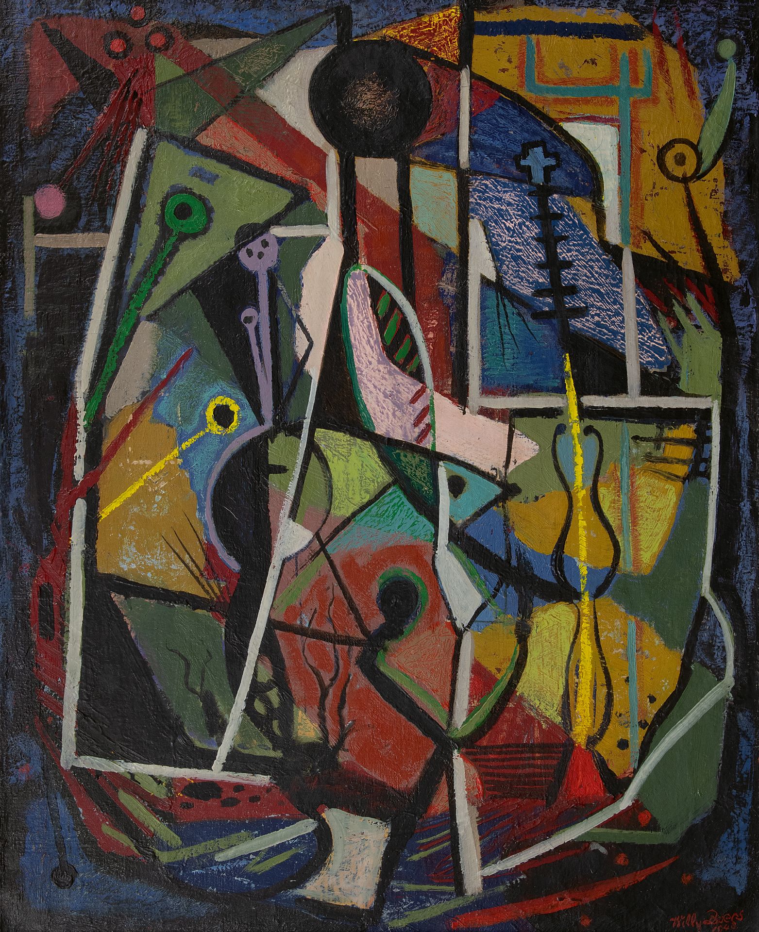 De Amsterdamse schilder Willy Boers was een van de sleutelfiguren in de vernieuwing van de beeldende kunst in Nederland na de Tweede Wereldoorlog. In 1946 was hij mede-oprichter van de Amsterdamse groep Vrij Beelden, waartoe o.a. Hussem, Roëde en Ouburg behoorden die regelmatig exposeerden in het Stedelijk Museum in Amsterdam. De schilders van Vrij Beelden kozen voor experiment en abstractie, waarbij zij vrij voortbouwden op bestaande stromingen als kubisme, surrealisme en expressionisme. Dit in tegenstelling tot Cobra, dat geheel brak met de bestaande beeldtaal. Het werk van Boers na 1945 was volledig abstract met duidelijke invloeden van Kandinsky. In 1950 richtte hij met o.a. Rooskens en Brands de groep Creatie op, waarin experiment en abstractie ook weer een rol speelden. Naast rasschilder was hij ook een begaafd auteur die een groot aantal verhelderende stukken over abstracte kunst schreef.