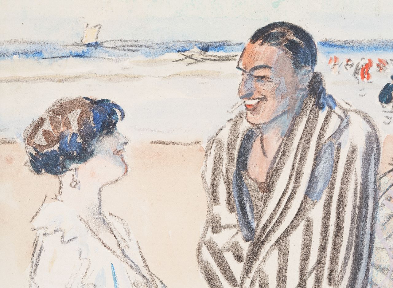 Willy Sluiter kunstwerk • aquarel • tekening • te koop Scheveningen, Bains Mixtes