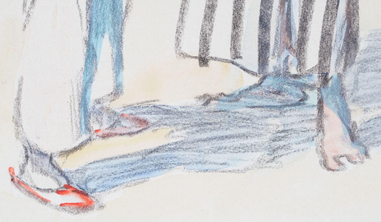 krijt en aquarel op papier op board 47,0 x 36,7 cm, gesigneerd rechtsonder