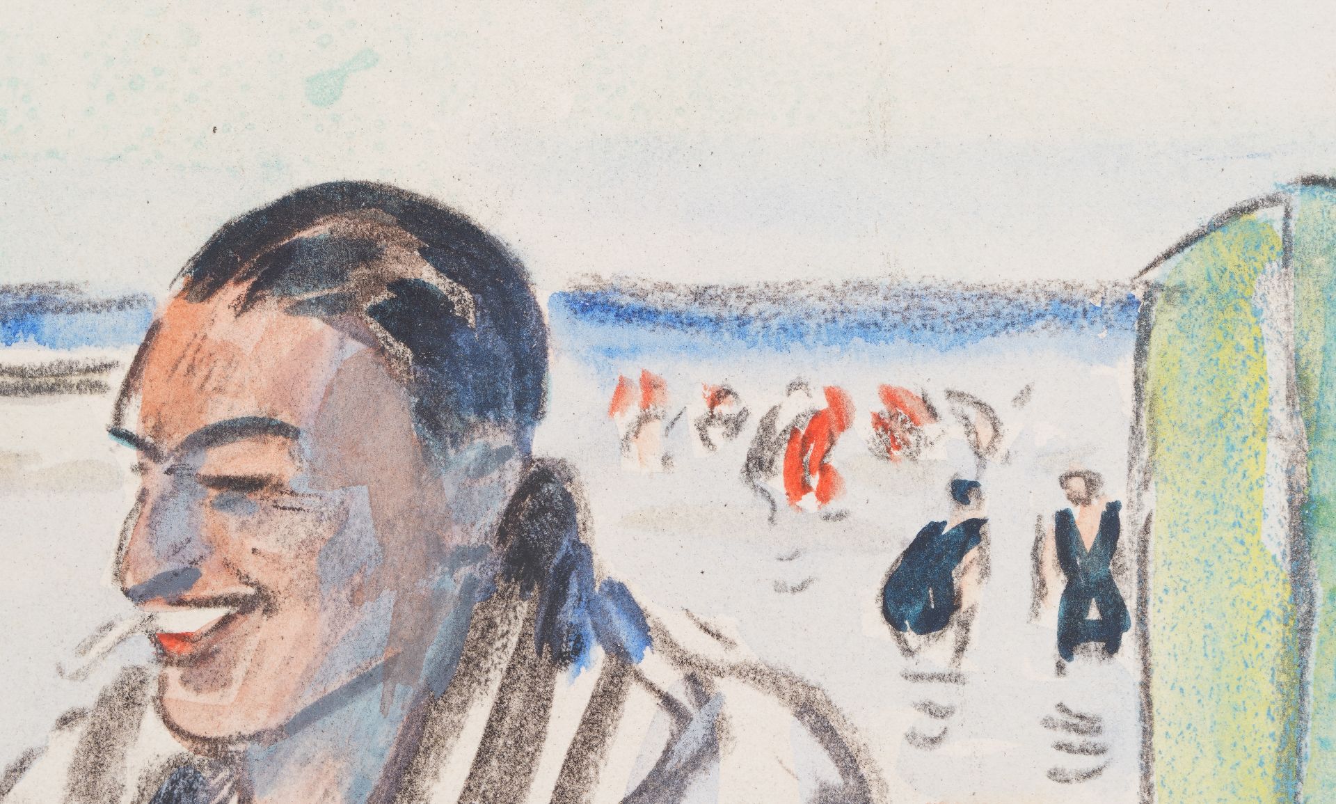 Willy Sluiter kunstwerk • aquarel • tekening • te koop Scheveningen, Bains Mixtes
