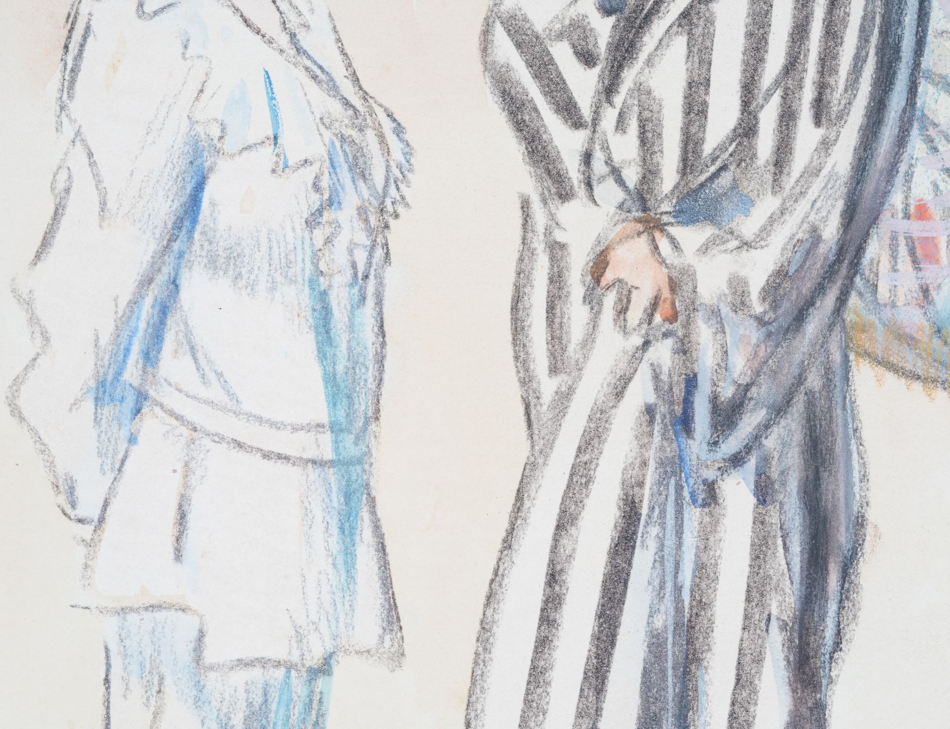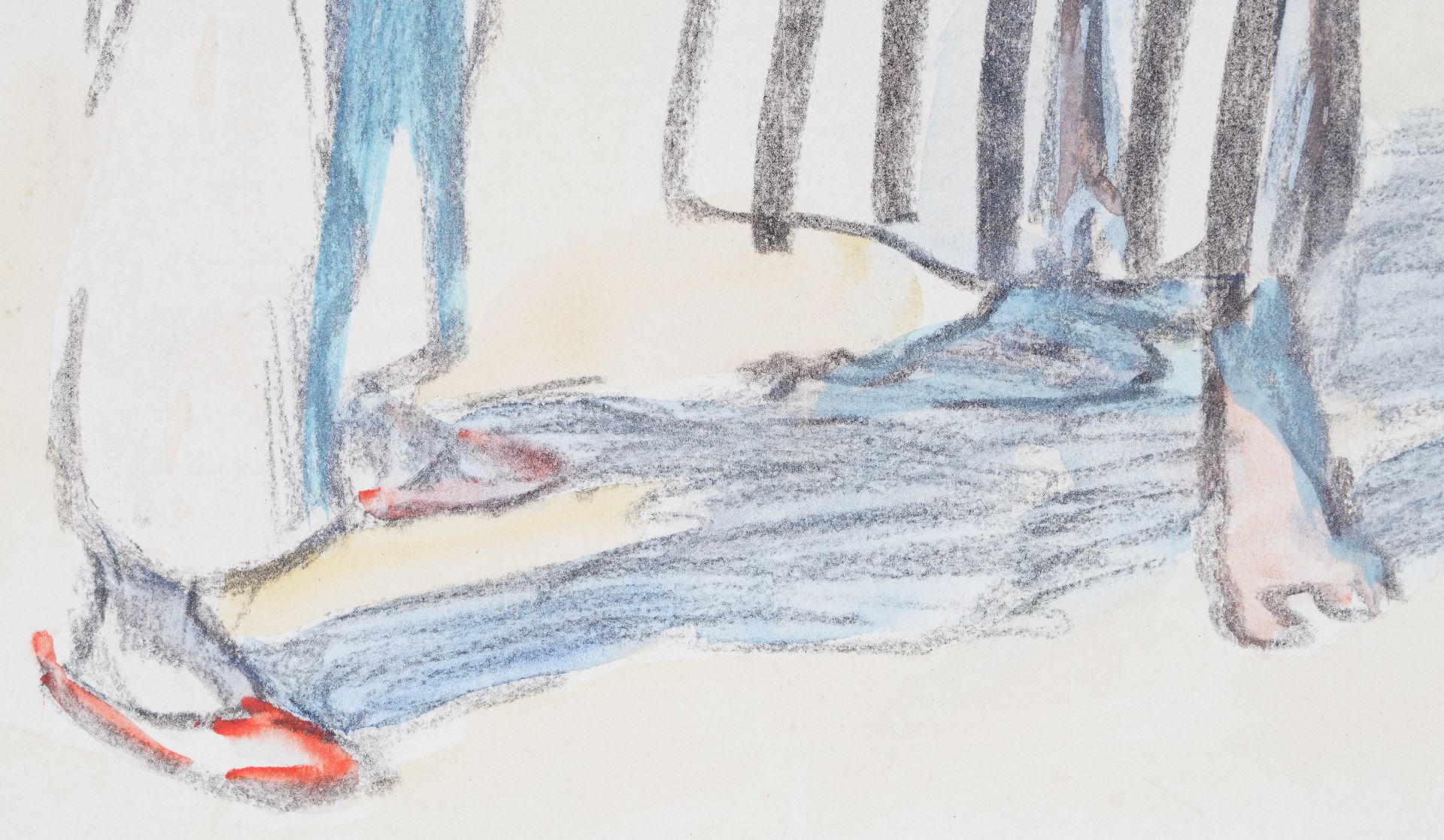 krijt en aquarel op papier op board 47,0 x 36,7 cm, gesigneerd rechtsonder