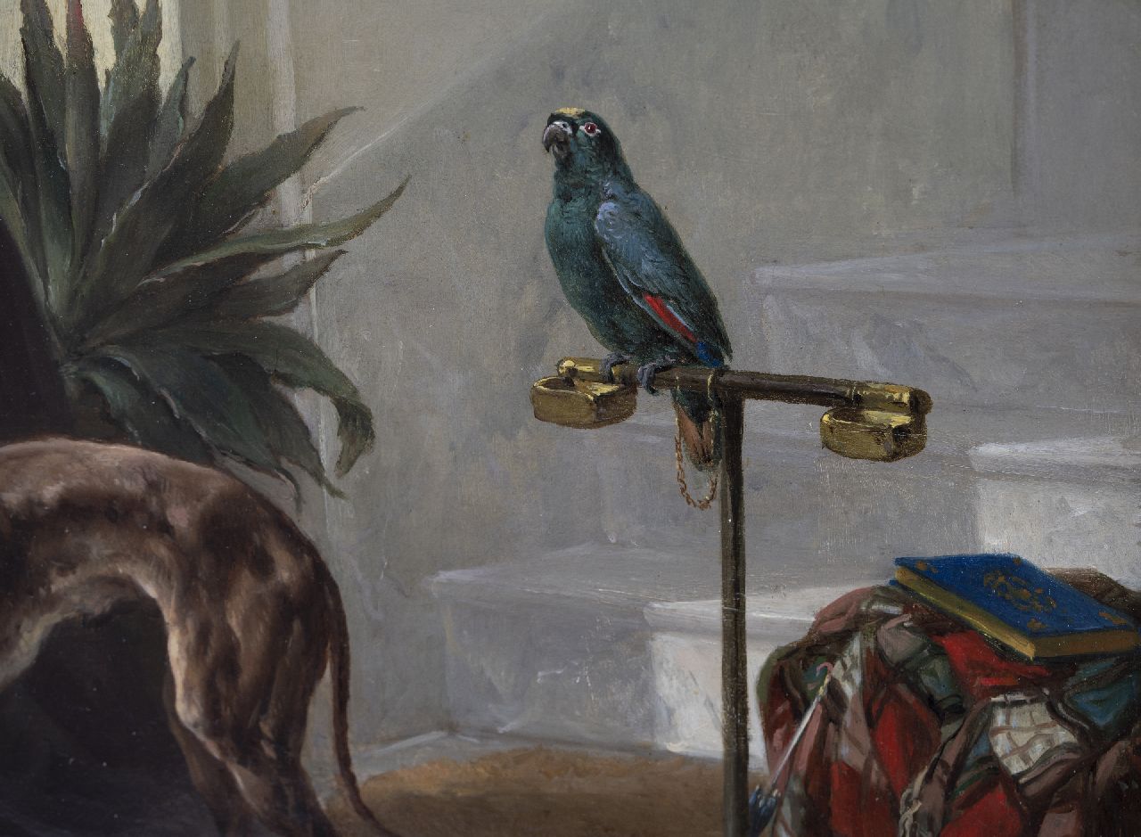 Wouterus Verschuur was in zijn tijd al een beroemd paardenschilder. Van zijn leermeester, de veeschilder P.G. van Os, leerde hij hun bouw en bewegingen tot in de perfectie vast te leggen. Als rechtgeaard romanticus had hij daarnaast belangstelling voor hun karakter. Zo schilderde hij sterke boerenpaarden op stal, ranke rijpaarden tijdens een middagrit en energieke tuigpaarden. Verschuur was ook een knap hondenschilder. Deze dieren komen op de meeste van zijn schilderijen dan ook voor. Tussen 1858 en 1868 woonde de schilder in Haarlem, waar hij les gaf aan Anton Mauve. Ook was hij leermeester van zijn zoon Wouterus jr., die zich eveneens specialiseerde in het schilderen van paarden.