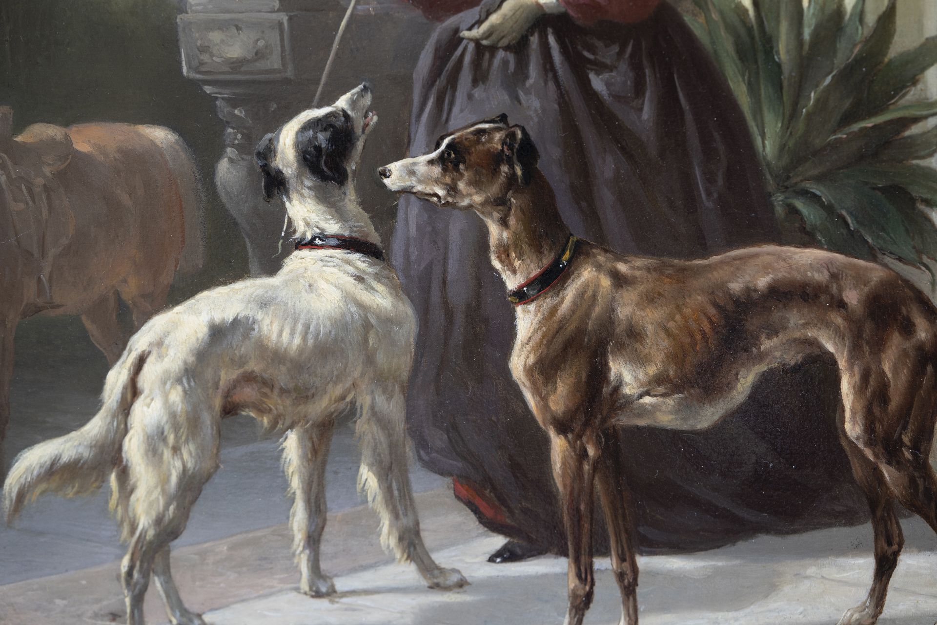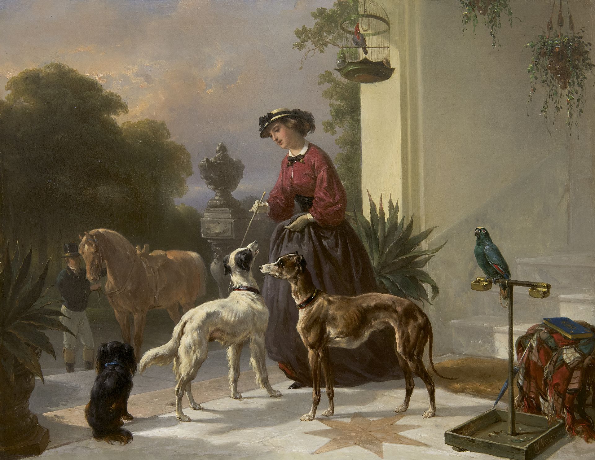 Wouterus Verschuur was in zijn tijd al een beroemd paardenschilder. Van zijn leermeester, de veeschilder P.G. van Os, leerde hij hun bouw en bewegingen tot in de perfectie vast te leggen. Als rechtgeaard romanticus had hij daarnaast belangstelling voor hun karakter. Zo schilderde hij sterke boerenpaarden op stal, ranke rijpaarden tijdens een middagrit en energieke tuigpaarden. Verschuur was ook een knap hondenschilder. Deze dieren komen op de meeste van zijn schilderijen dan ook voor. Tussen 1858 en 1868 woonde de schilder in Haarlem, waar hij les gaf aan Anton Mauve. Ook was hij leermeester van zijn zoon Wouterus jr., die zich eveneens specialiseerde in het schilderen van paarden.