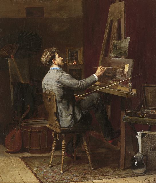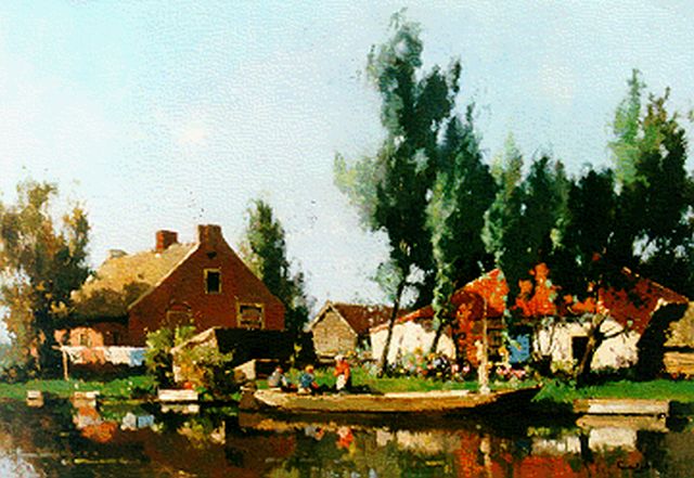 A summer afternoon along the water near Rhenen, Öl auf Holz 40,6 x 54,8 cm, signed l.r.