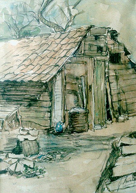 Israëls J.  | Flickwäsche, Holzkohle und Aquarell auf Papier auf Holzfaser 34,4 x 22,2 cm, Unterzeichnet u.l. Israëls J.