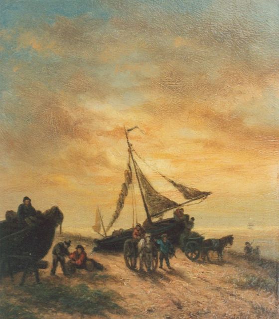 Dumoulin R.  | Figures on the beach, Öl auf Holz 26,8 x 35,0 cm, signed l.l. und dated 1923 Dumoulin R.