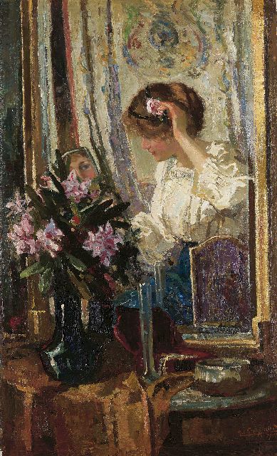 A woman with hand mirror, Öl auf Holz 27,1 x 21,0 cm, signed l.r. und dated '27
