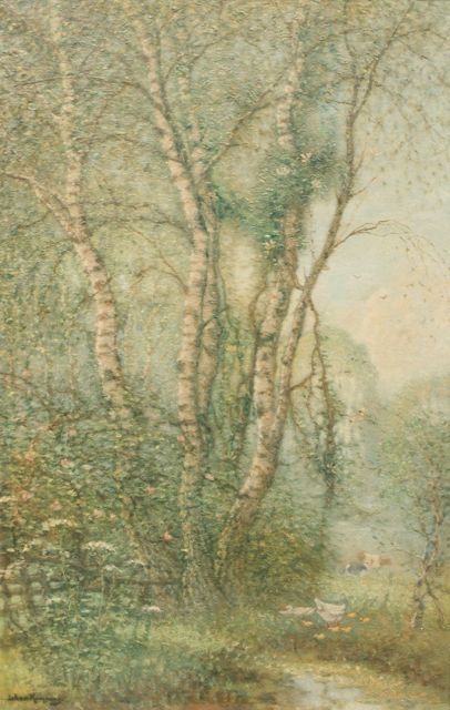Birkenwäldchen, Öl auf Leinwand45,4 x 23,8 cm, Unterzeichnet r.u.
