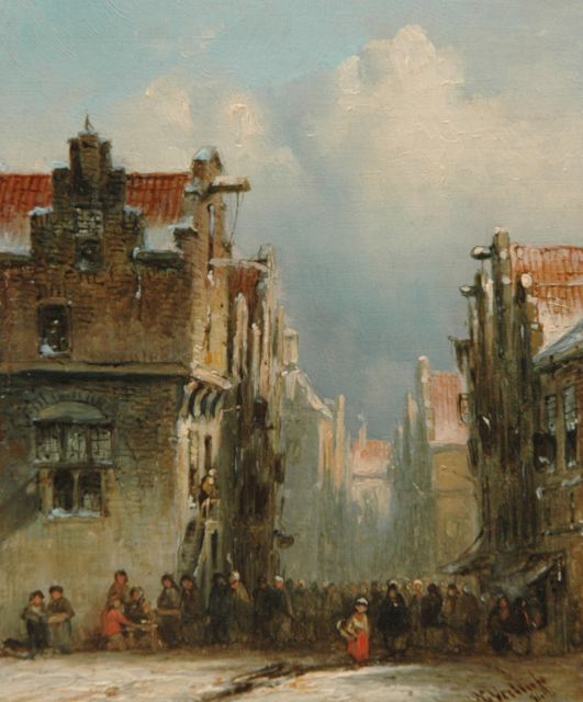 Jongh M.J. de | A view of Amsterdam in winter, Öl auf Leinwand 30,4 x 40,3 cm Jongh M.J. de