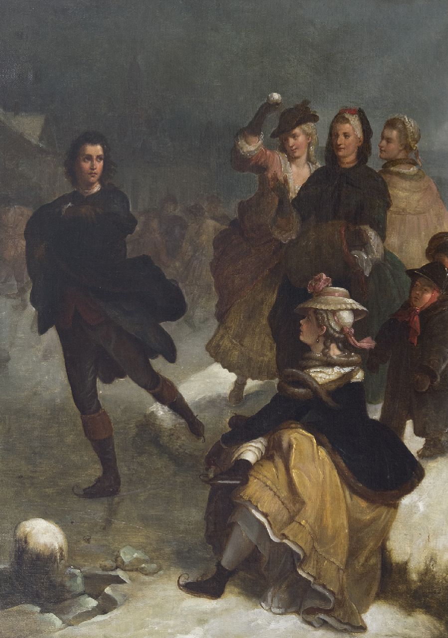 Eisspaß war für alle in unserem Herkunftsland. Sobald der Frost begann, standen Männer und Frauen aller Gesellschaftsschichten brüderlich auf den Eisen. Im Laufe des 17. Jahrhunderts, mit dem zunehmenden Bewusstsein des Staates in der Republik, wurde das Skaten immer mehr zur Unterhaltung der „normalen“ Menschen, obwohl sie weiterhin gemeinsam den Eisspaß erlebten. Die höheren Positionen gingen oft zu Fuß oder saßen in einem kunstvoll bemalten Schub- oder Backschlitten oder Schlitten auf dem Eis.