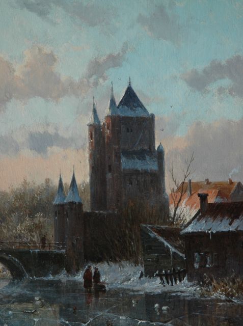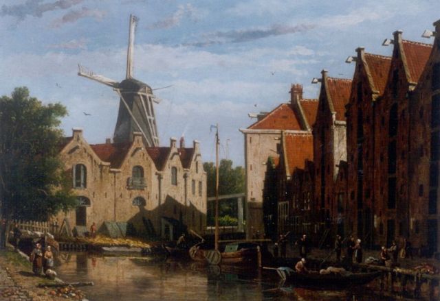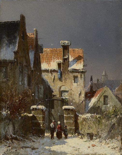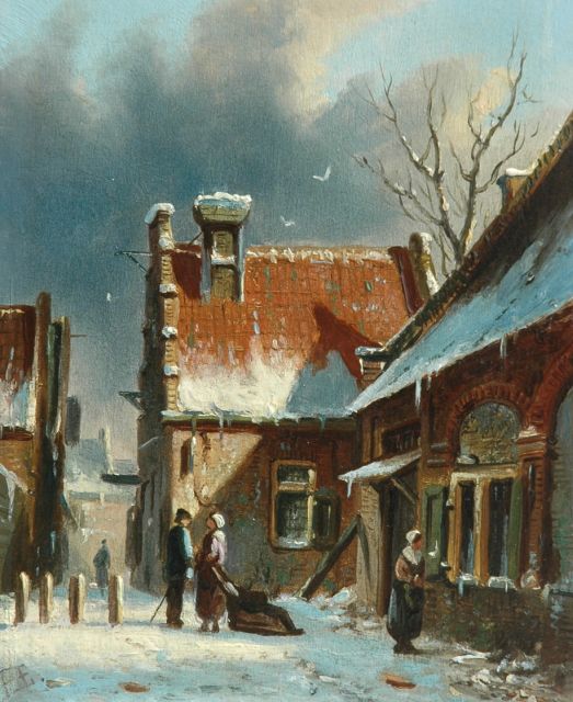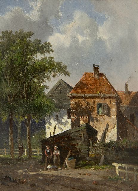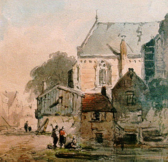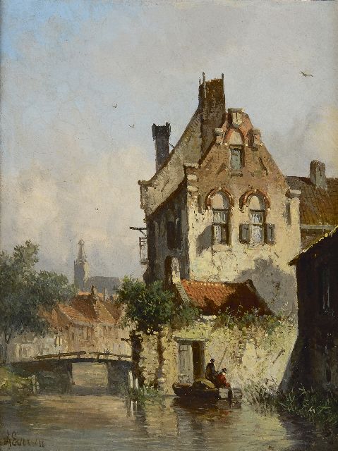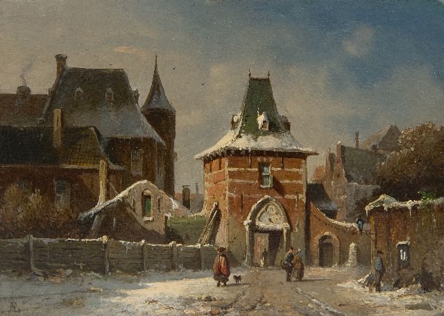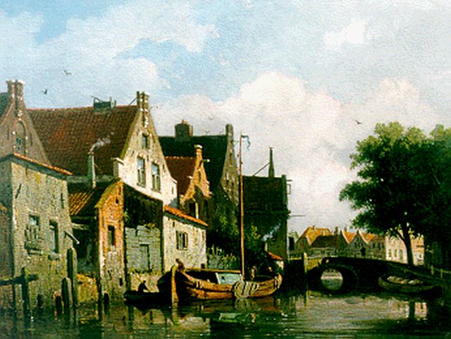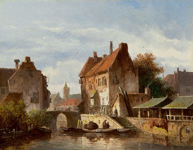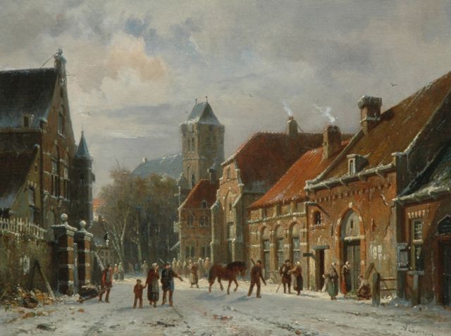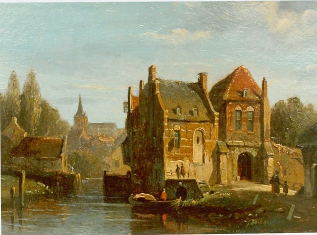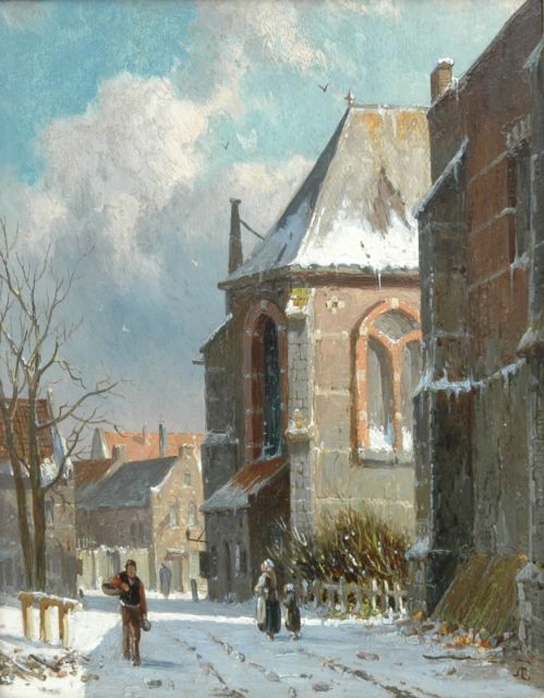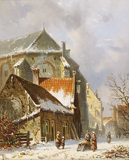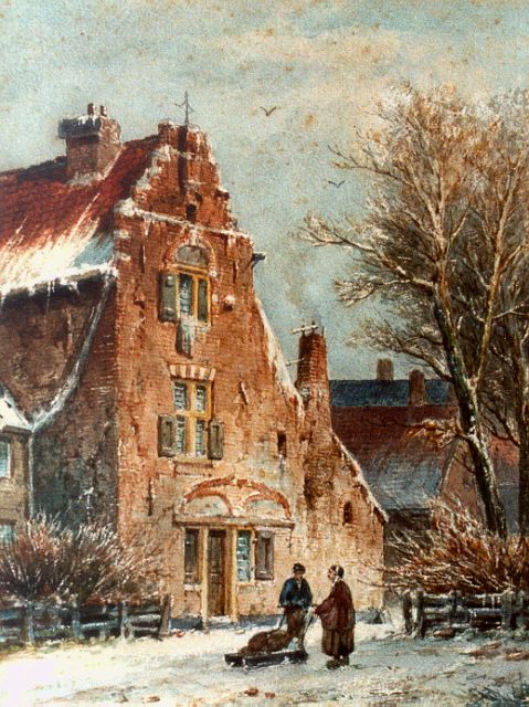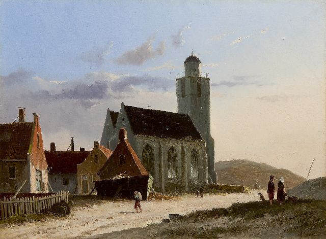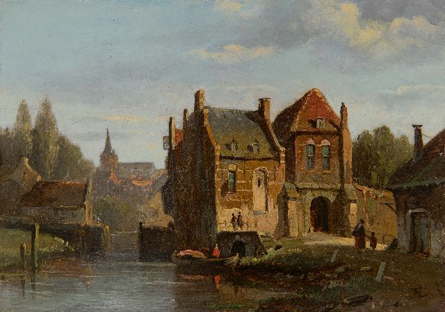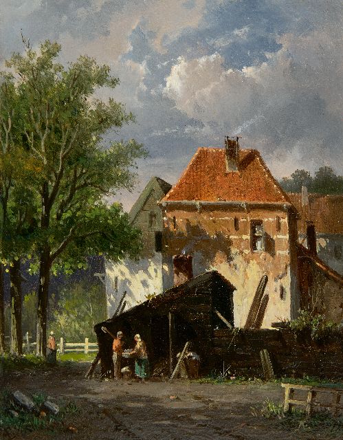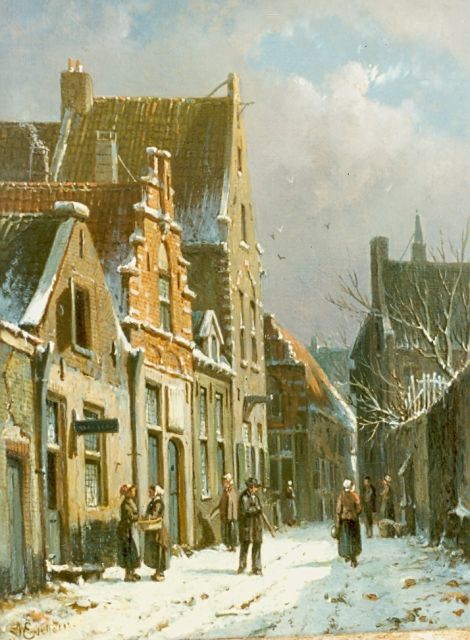 Adrianus Eversen galt als der begabteste Schüler des berühmten Stadtbildmalers Cornelis Springer. Eversen übernahm den kompositorischen Aufbau, die Detaillierung und die warme Farbgebung von seinem Lehrer. Allerdings war er freier in der Wahl der Themen. Während Springer hauptsächlich 'Porträts' bestehender Gebäude und Stadtteile malte, ordnete Eversen seine Dörfer und Straßen meist so an, dass ein schönes Stadtbild entstand.