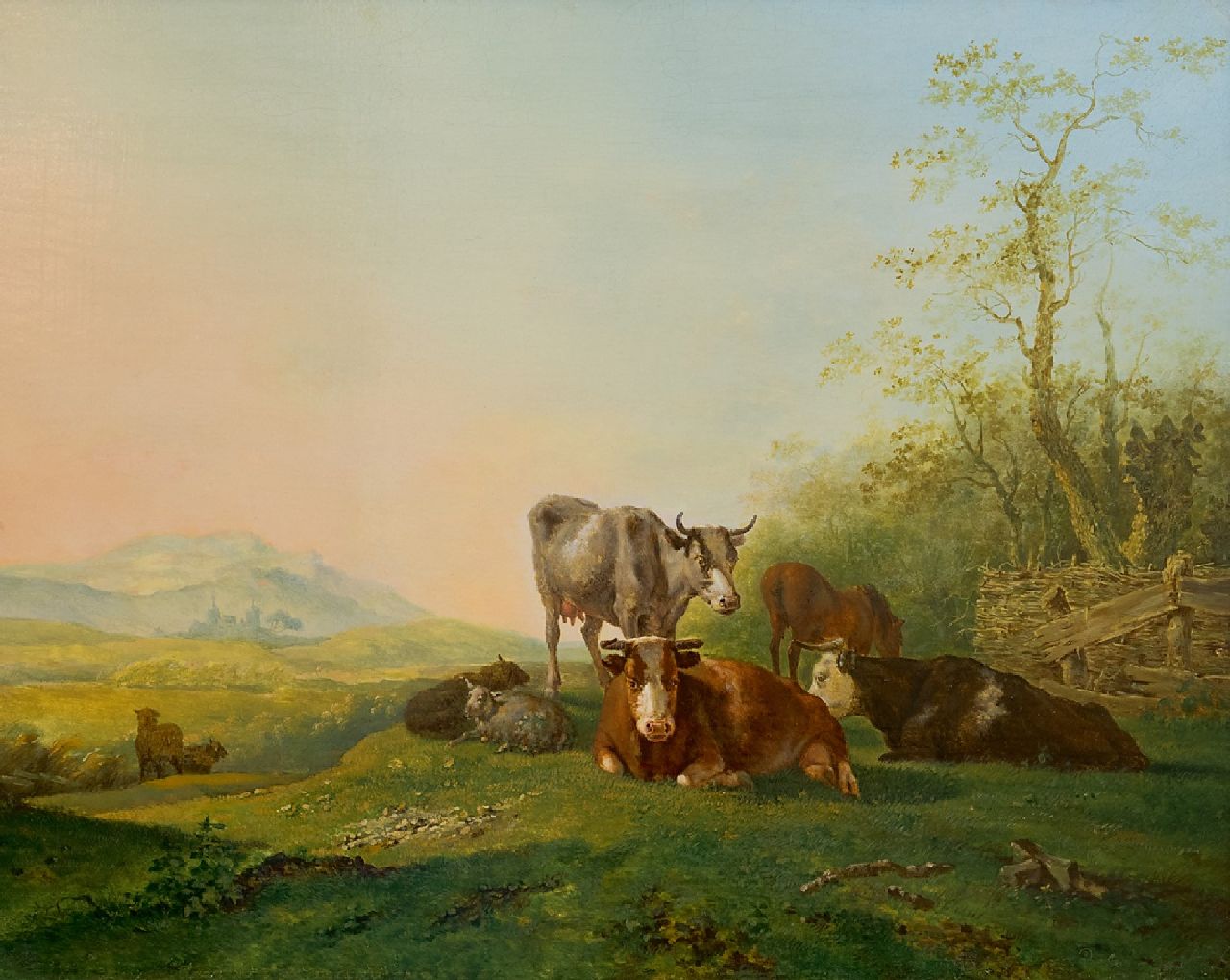 Bruno van Straaten | Kühe und Schafe bei einem Zaun, Öl auf Holz, 29,7 x 36,9 cm, Unterzeichnet r.u. und ohne Rahmen