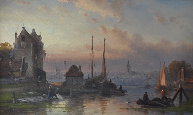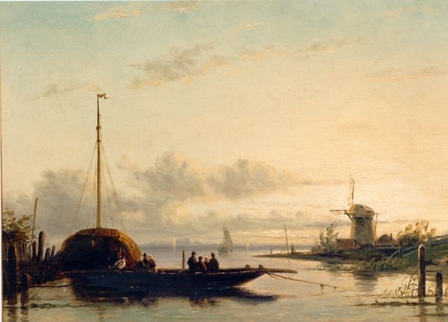 Charles Leickert | Daily activities along the river, Öl auf Holz, 24,7 x 40,0 cm, signed l.r. und dated 1864