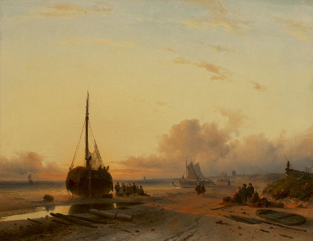 Charles Leickert | 'Bomschiffe' auf dem Strand bei untergehender Sonne, Öl auf Leinwand, 58,0 x 75,0 cm, Unterzeichnet r.u. und datiert 'London' 1845