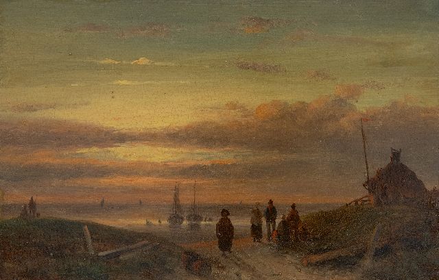 Charles Leickert | Figures on the beach at sunset, Öl auf Holz, 17,3 x 29,8 cm, signed l.r.