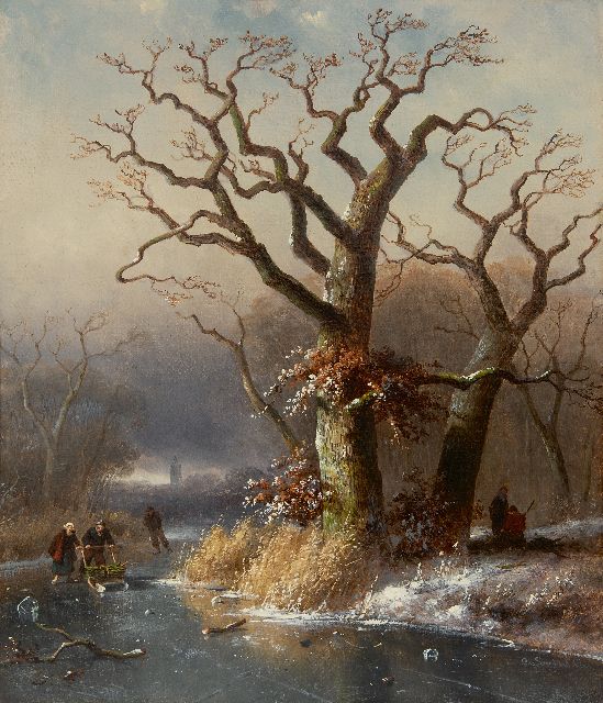 Charles Leickert | Skaters on a frozen waterway, Öl auf Leinwand auf Holz, 60,1 x 85,0 cm, signed l.r.