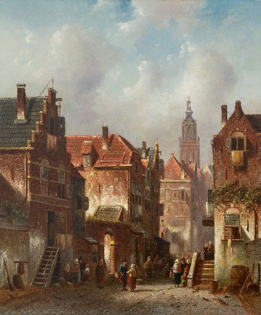 Charles Leickert | Stadtansicht mit Gemüseverkäufern, Öl auf Holz, 27,6 x 33,0 cm, Unterzeichnet u.r. und zu datieren um 1855