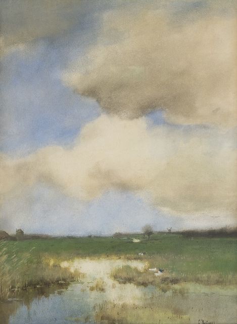 Cornelis Kuijpers gilt als Teil der Nachblüte der Haager Schule. Seine Landschaftsdarstellung erinnert stark an Willem Maris. Von seinen Lehrern an der Quellinus-Schule in Amsterdam ermutigt, ging Kuijpers mit seiner Staffelei in die Natur. Zuerst in Rijswijk und später im bewaldeten Renkum (1898-1910) malte er dampfende Wiesen mit Gräben, blühenden Obstgärten und schwimmenden Lastkähnen entlang der Uferpromenade in einer silbergrauen und smaragdgrünen Farbpalette. Unter anderem zusammen mit Théophile de Bock und Charles Dankmeijer stellte er seine Arbeiten auf Ausstellungen der Renkumer Künstlervereinigung Pictura Veluvensis aus.
