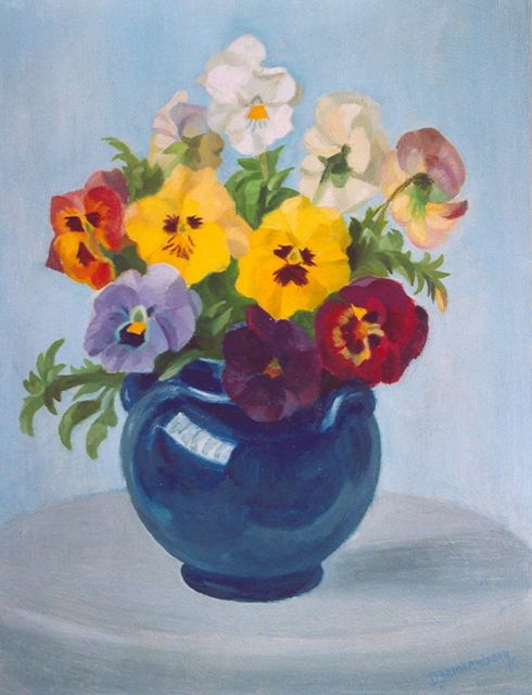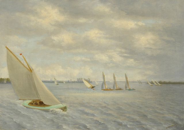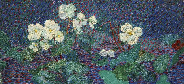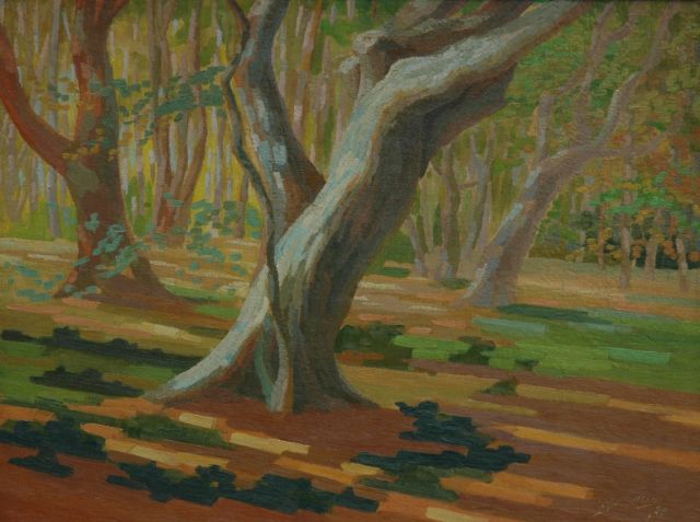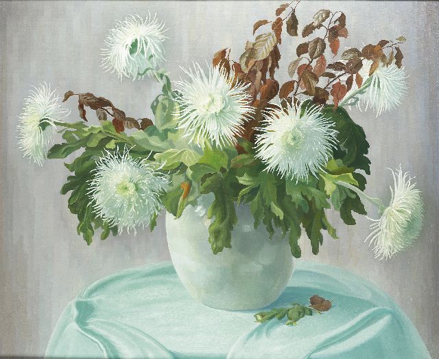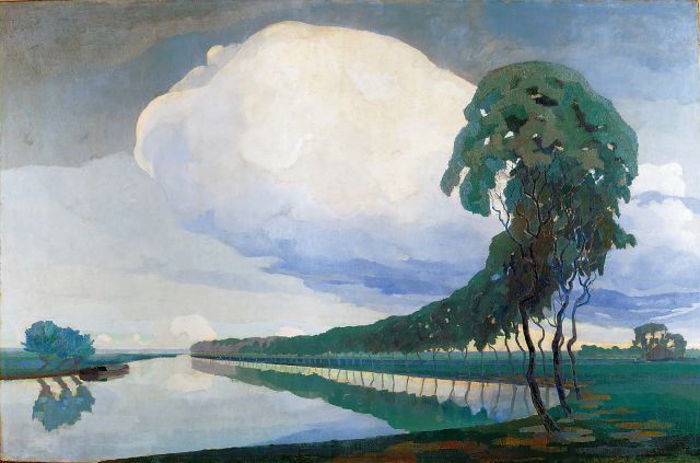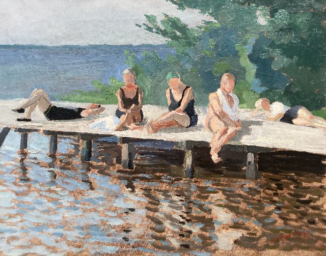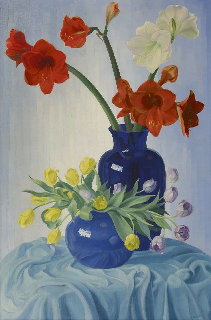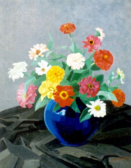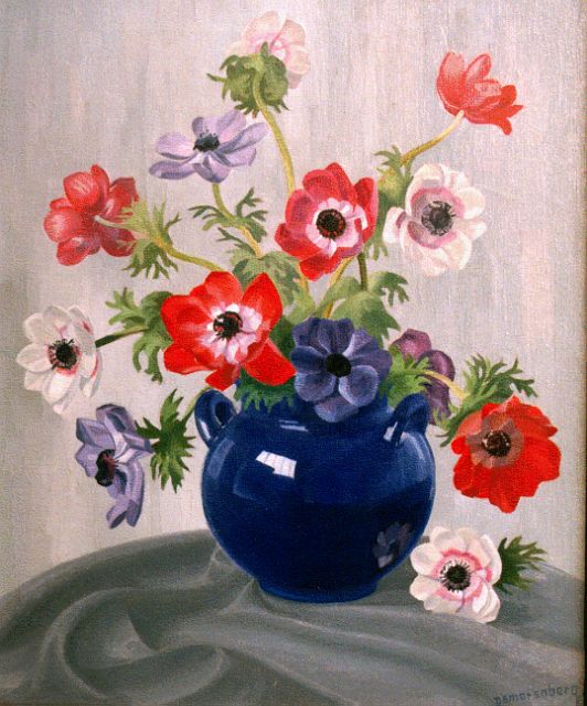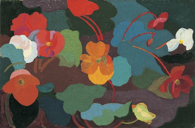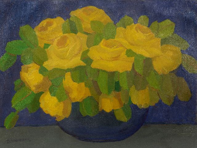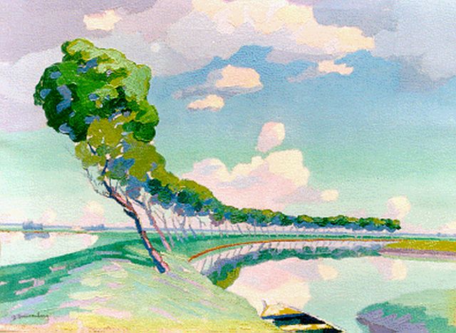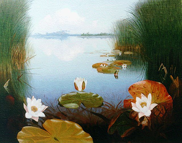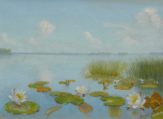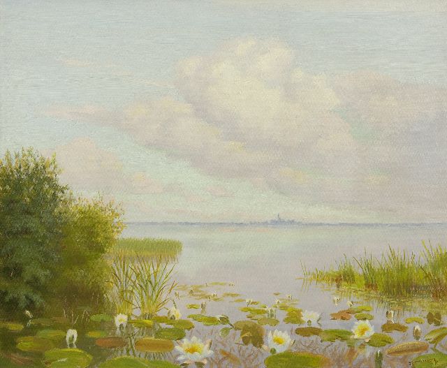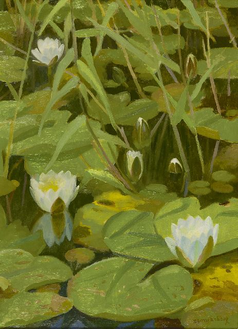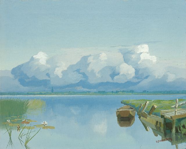 Dirk Smorenberg, geboren 1883, ist einer der wenigen Art-Deco-Maler in den Niederlanden. Seine Darstellung der niederländischen Seerosenseen unterschied sich stark von der der Maler, die dieses Thema zuvor auf die Leinwand gebracht hatten. Die Maler der Haager Schule achteten auf die Stimmung in schnellen Pinselstrichen und grün-braunen Farbtönen, während Smorenberg in seinen Arbeiten um 1910 mit stilisierten Formen, geringer Tiefe und frischen, leuchtenden Farben in den Farben Grün, Blau, Flieder und manchmal Rot experimentierte. Anfangs war sein Werk in der Öffentlichkeit nicht so beliebt, dass es zu flach, taub und ohne Emotionen gemalt wurde. Die Anerkennung entstand jedoch bald, als der Art-Deco-Stil in Mode kam. Smorenberg war ein unabhängiger und origineller Künstler. Für viele seiner Gemälde fertigte er spezielle handgeschnitzte Holzrahmen an. Neben den berühmten Seerosen malte er auch Stillleben, ein einziges Stadtbild und Porträts.