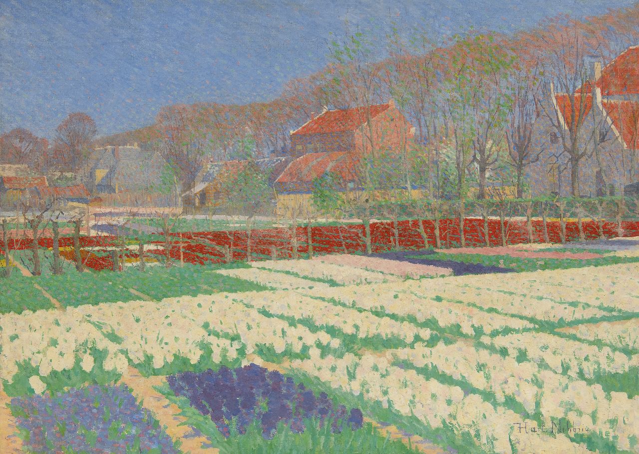 Die Malerkarriere von Ferdinand Hart Nibbrig (1866-1915) begann traditionellerweise mit einem Studium an der Amsterdamer Staatsakademie. Bei einem anschließenden Aufenthalt in Paris (1888-1889) lernte er den Neo-Impressionismus von Lucien und Camille Pissarro kennen, der ihn sehr beeindruckte: Sie malten mit einer Technik, bei der unvermischte Farben in Punkten (Pointilles) aufgetragen wurden. und Striche, um den Glanz des Lichts optimal einzufangen. Hart Nibbrig wendet diese Technik ab 1895 selbst an, jedoch ohne die strengen Farbvorschriften, denen der Pointillismus in Frankreich unterliegt, und wählt dafür wiederum eine sehr feine Pointille eine etwas lockerere Technik aus Farbstrichen, kombiniert mit Farbschwüngen und Konturlinien.