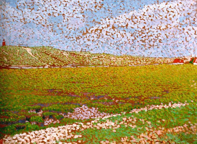 Bis 1894 sucht er nach seinem eigenen Stil. Er experimentiert mit verschiedenen Techniken des Farbauftrags. Als er im Frühjahr 1892 an den Blumenzwiebelfeldern bei Bennebroek und Hillegom vorbeiradelte, wusste er, was zu tun war. Dieses Farbenfest verändert seine Palette völlig und inspiriert ihn zu seinen ersten impressionistischen Arbeiten. Nach einem Besuch der Ausstellung der belgischen Luministenbewegung Les Vingt in Den Haag und seinem Umzug nach Laren im Jahr 1894 änderte sich sein Stil und er wurde einer der ersten niederländischen Künstler, der die pointillistische Technik verwendete. Eine Technik, bei der unvermischte Farben in Punkten und Streifen aufgetragen werden, um den Glanz des Lichts optimal einzufangen.