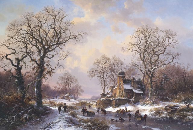 Es ist nicht verwunderlich, dass der Erfolg von BC Koekkoek junge Maler anzog, die sich mit Landschaftsmalerei auskennen wollten. In Kleve berichteten ihm so viele Schüler, dass der Maler 1841 eine Art Malschule gründete. Sein Buch 'Erinnerungen und Ankündigungen eines Landschaftsmalers' (1841) war daher eine Art Lehrbuch, in dem Koekkoek seine Ansichten zu Komposition und Technik noch einmal klar erläuterte. Ausgangspunkt war die Zusammenstellung einer idealen Landschaft mit den schönsten Motiven der Natur. Willem Bodeman, nur drei Jahre jünger als Koekkoek, war einer seiner ersten Schüler. Koekkoek begann 1826 in Amsterdam mit seinem Rat an diesen Malerfreund, eine Begleitung, die er in Hilversum und bis 1839 in Kleve fortsetzte. In Bodemans Landschaften und Waldansichten im Sommer und Winter ist der Einfluss seines Lehrers bei der Auswahl der Motive, der Komposition und der detaillierten Ausarbeitung deutlich zu spüren. Der Maler Frederik Marinus Kruseman war bereits viel stärker ausgebildet, als er 1837 nach Kleve kam. Er wurde von Nicolaas Roosenboom, bekannt für seine Eisszenen, und danach von Jan van Ravenswaaij unterrichtet. Von einer Master-Student-Beziehung zwischen den beiden Malern war daher keine Rede, auch weil Koekkoek vor 1841 keine ständigen Studenten hatte. In Krusemans Werken beziehen sich Pinselstriche und Motive, insbesondere die schön verzweigten Bäume, auf Koekkoek. Ab den 1960er Jahren malte er neben Sommerlandschaften viele Eisszenen mit Fantasy-Gebäuden. Koekkoeks Schwager A.J. Daiwaille kam zwischen 1840 und 1848 nach Kleve, um Rat und Unterricht zu erhalten. Seine Sommer- und Winterlandschaften verraten insbesondere den Einfluss des Lehrers auf Fach und Komposition.