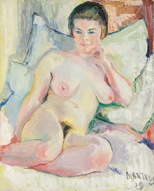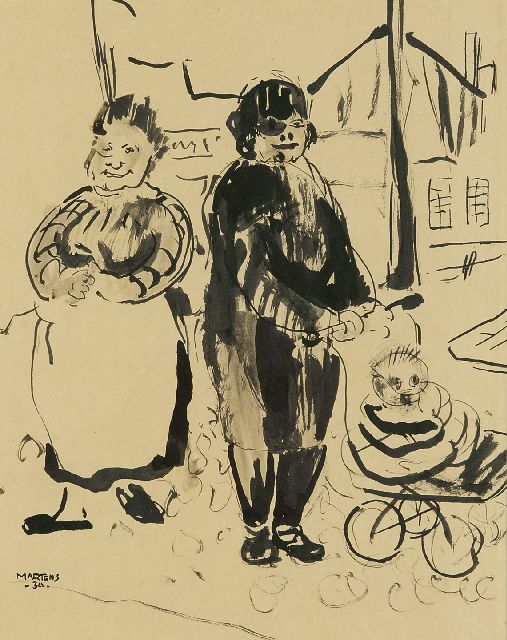 Zwischen 1925 und 1932 war Martens besonders fasziniert von der Hektik des Stadtlebens, der Dynamik des Stadtverkehrs, in der er sich auf seiner Harley Davidson zurechtfand. In seinen lebendigen Stadtlandschaften, Höhepunkten seines Schaffens, malte Martens die Figuren mit kräftigen Farben, Sinn für Humor und einem Auge für den Einzelnen. Neben Stadtlandschaften und Porträts malte Martens Modell- und Figurenstudien, Stillleben, Landschaften sowie Karnevals- und Zirkusleben. Martens hatte von Jan Wiegers gelernt, seine Motive schnell und direkt zu registrieren und eine freie und üppige Verwendung von Farben anzuwenden. Seine Arbeit wurde nicht immer gelobt. Der Nieuwe Rotterdamse Courant schrieb 1921 über 'reibungslose Studien' und 1922 über die Nieuwsblad van het Noorden: 'So wecken beispielsweise Martens' zahlreiche Gemälde den Gedanken an einen wirtschaftlichen Abschwung der Farbpreise. ' Aber zwischen 1923 und 1927, als Martens an zwölf Ausstellungen teilnahm, die fast alle von De Ploeg organisiert wurden, schien sich seine Arbeit anders zu entwickeln: ein kraftvolleres Design, die Farben fester und die Themen wichtig genug, um darüber nachzudenken. Zu dieser Zeit verwendete er für kurze Zeit 'Wachsfarbe', ein Medium, das von Jan Wiegers eingeführt wurde. Um 1930 wurde seine Arbeit immer positiver diskutiert: 'Spontane, empfindliche und gutaussehende Arbeit, manchmal tief empfunden, mit einem auffallend frischen Farbgebrauch.' Es ist kein Zufall, dass Martens von Henk van Os, der die brüllenden zwanziger Jahre wie kein anderer aufzeichnete, als Stadtbildmaler bezeichnet wurde.