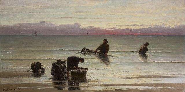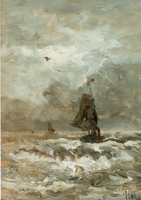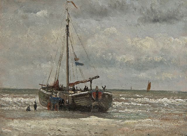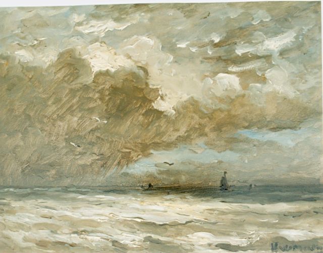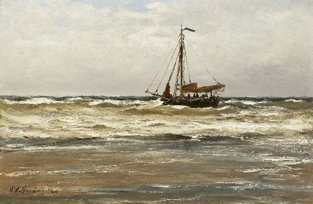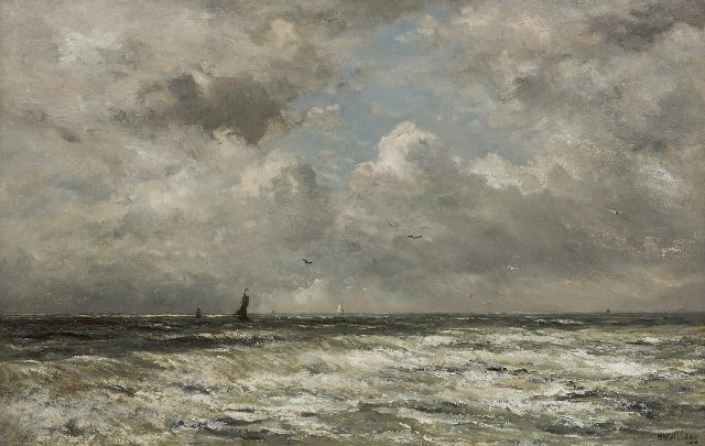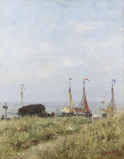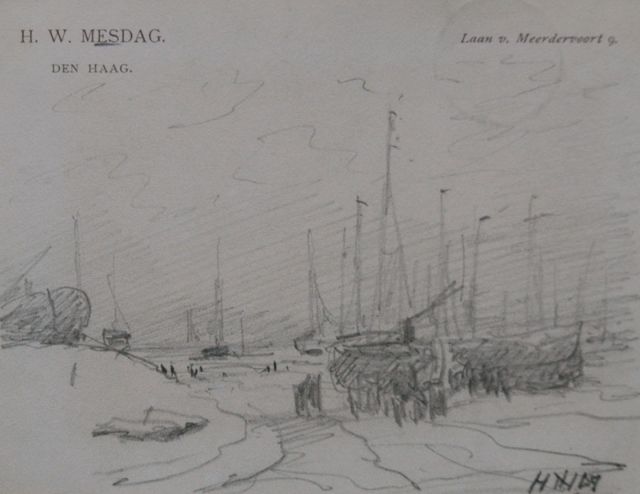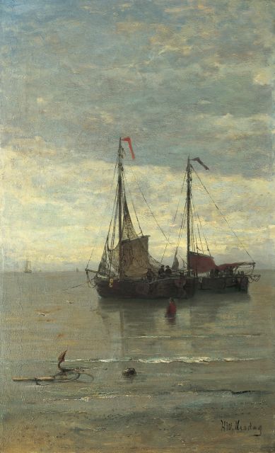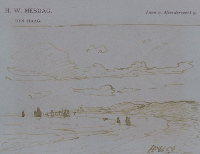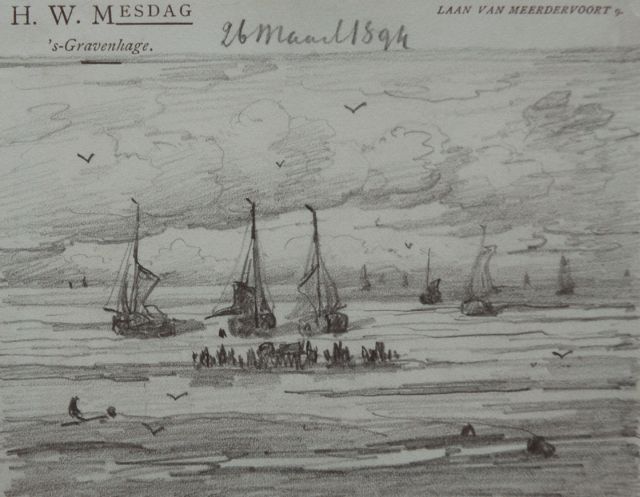 In Mesdags Strandszenen und auf offener See spürt man fast die salzige Luft und den kalten Wind der Nordsee. Mit seiner Palette aus nuanciertem Grün, Grau und Braun porträtiert er perfekt die Farbe und den Duft der niederländischen Küste. Seine breite, schnelle Berührung berührt nicht nur die richtigen Saiten, er weiß auch, wie man innoviert und in der Komposition variiert, damit kein Gemälde das gleiche ist. Im Kontext seiner Vorgänger aus Den Haag mit dem romantischen Blick auf den Strand - wie Andreas Schelfhout, Hermanus Koekkoek und Louis Meijer - bildete Mesdags Beitrag zur Haager Schule einen Hauch frischer Luft für den Liebhaber der modernen Kunst.