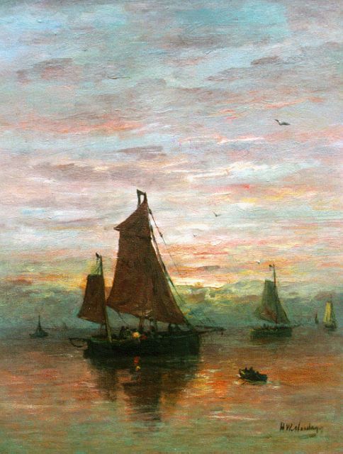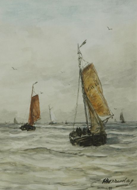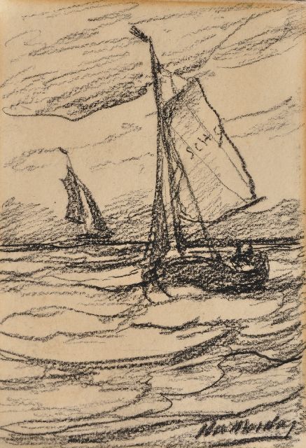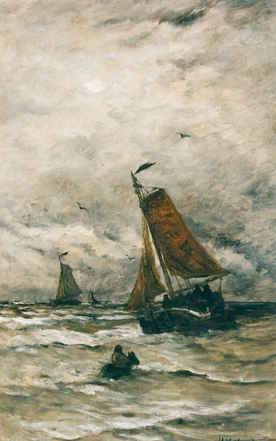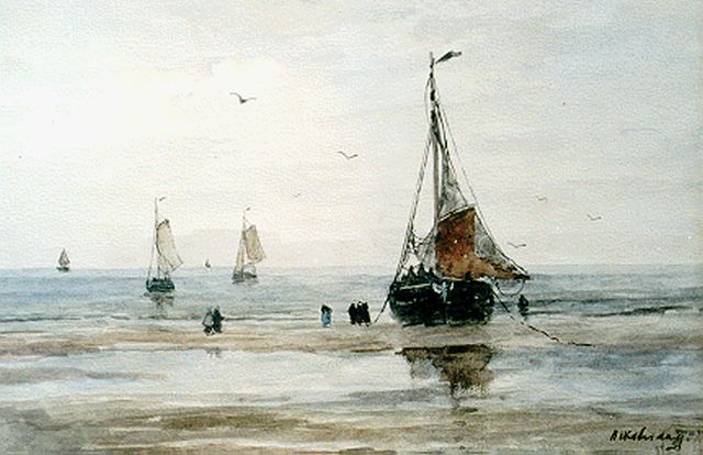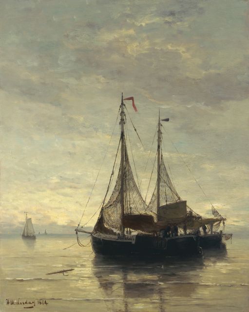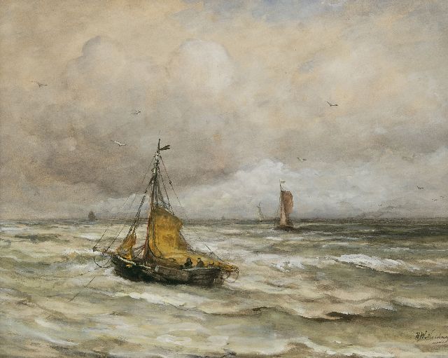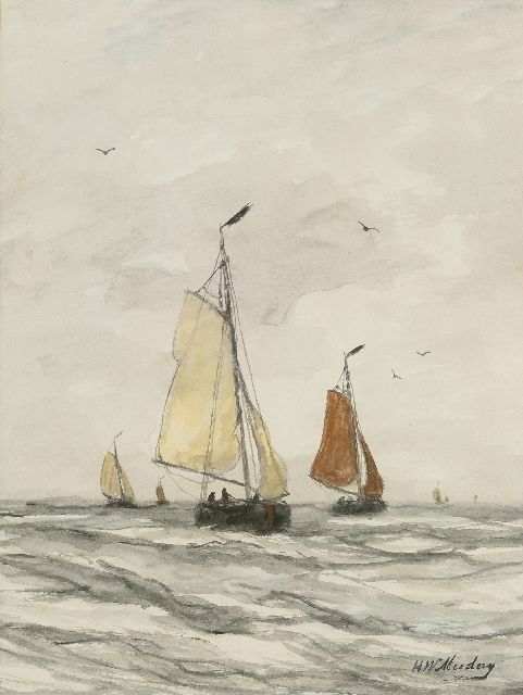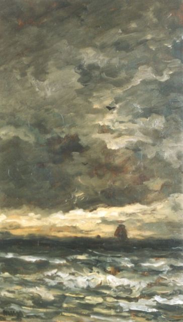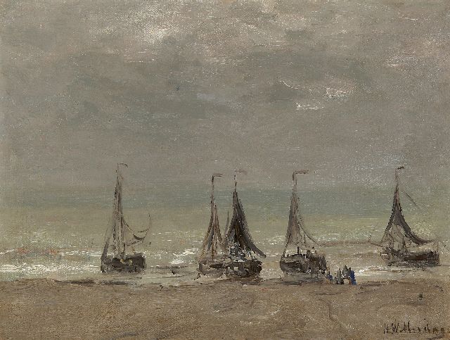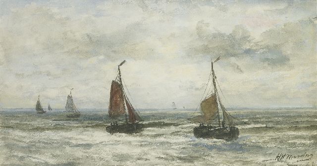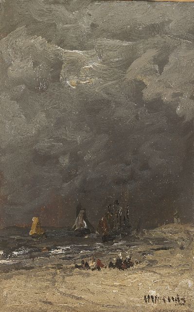 In Mesdags Strandszenen und auf offener See spürt man fast die salzige Luft und den kalten Wind der Nordsee. Mit seiner Palette aus nuanciertem Grün, Grau und Braun porträtiert er perfekt die Farbe und den Duft der niederländischen Küste. Seine breite, schnelle Berührung berührt nicht nur die richtigen Saiten, er weiß auch, wie man innoviert und in der Komposition variiert, damit kein Gemälde das gleiche ist. Im Kontext seiner Vorgänger aus Den Haag mit dem romantischen Blick auf den Strand - wie Andreas Schelfhout, Hermanus Koekkoek und Louis Meijer - bildete Mesdags Beitrag zur Haager Schule einen Hauch frischer Luft für den Liebhaber der modernen Kunst.