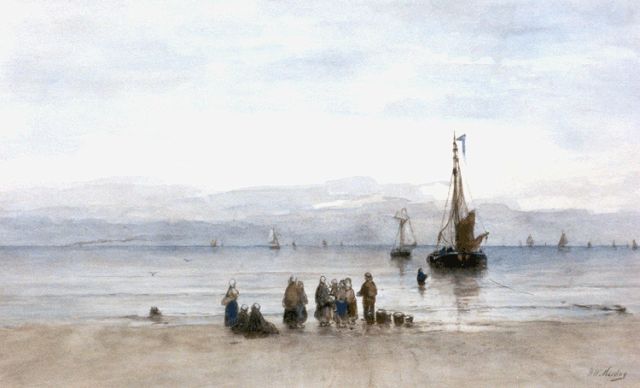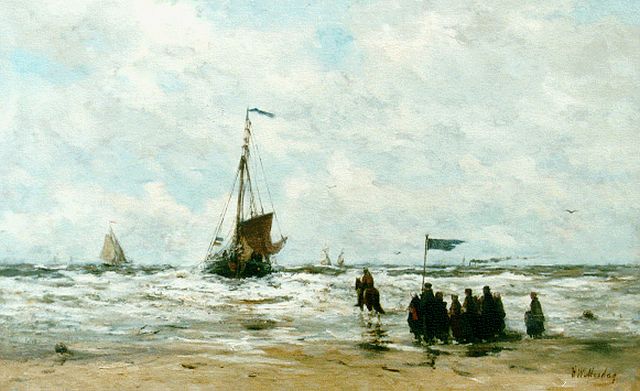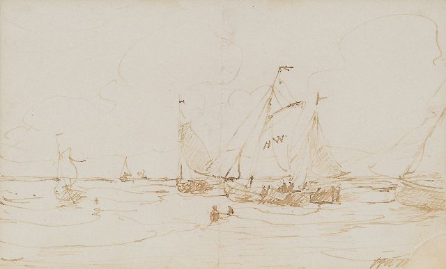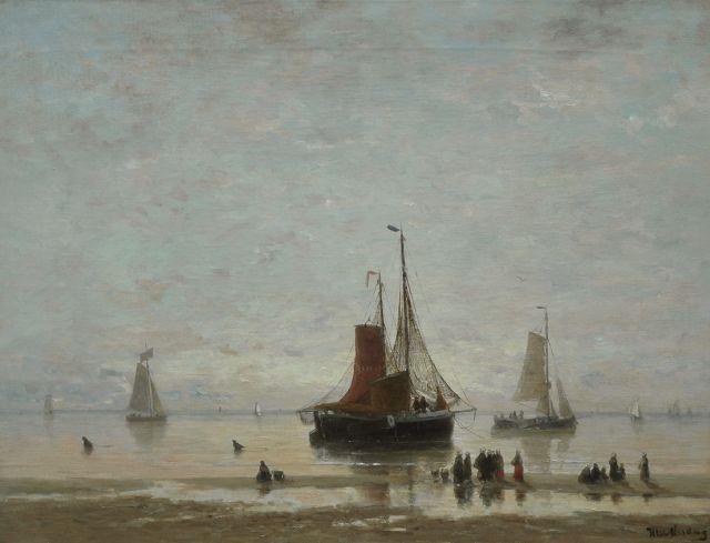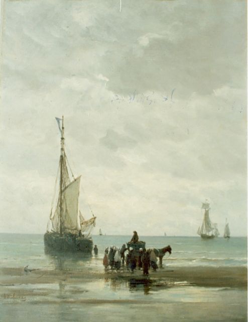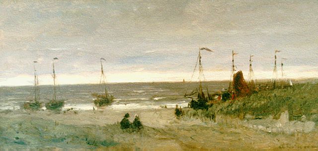 'Bomschuiten' and fisherfolk on the beach, Scheveningen