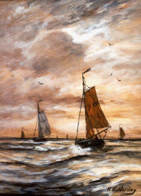 Mesdag übte viel, hatte großes Bedürfnis zu malen und freute sich über Kritik. Als 1870 jeder überrascht war, die Goldmedaille im Pariser Salon mit einer großen Seelandschaft zu gewinnen, etablierte sich sein Ruf sofort in den Niederlanden. Er trat dem Pulchri Studio in Den Haag bei, wo er eines der wichtigsten Mitglieder wurde. Mesdag etablierte sich als einer der größten Marine- und Strandmaler seiner Zeit mit einer großen Produktion von hoher Qualität. Er baute ein starkes internationales Netzwerk auf, verkaufte sich gut im In- und Ausland und nahm an vielen Ausstellungen teil. Seine Frau, Sientje Mesdag-van Houten, malte ebenfalls im impressionistischen Stil mit Merkmalen der Haager Schule in Bezug auf Farbe und Berührung. Ihre Bilder strahlen oft eine intime Atmosphäre aus und sind eindeutig von ihrem Ehemann und ihrer Gesellschaft in Den Haag beeinflusst.