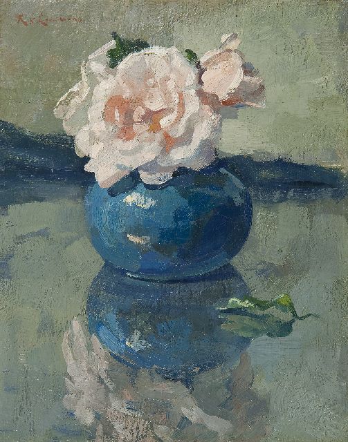 Henk van Leeuwen | Roses in a blue vase, Öl auf Leinwand, 29,3 x 23,8 cm, signed l.l.