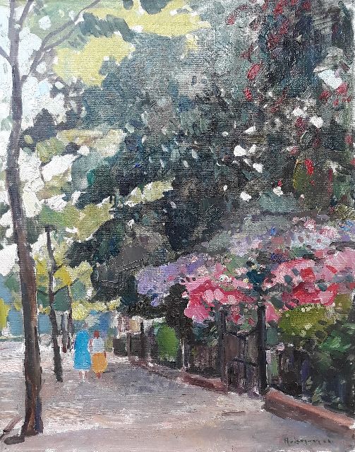 Henk van Leeuwen | Figuren in einer sonnigen Allee, Öl auf Leinwand, 50,3 x 40,1 cm, Unterzeichnet u.r.