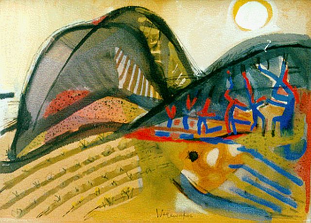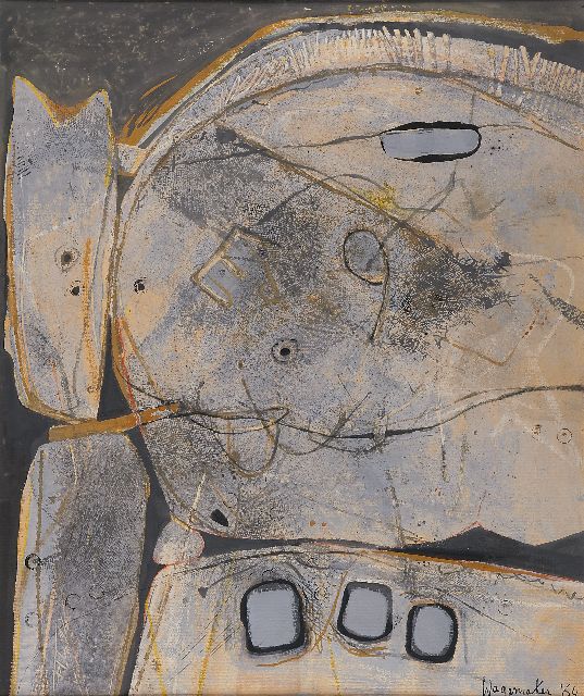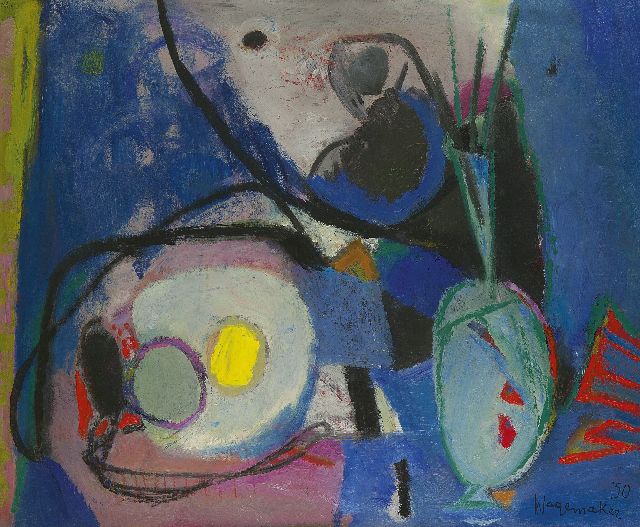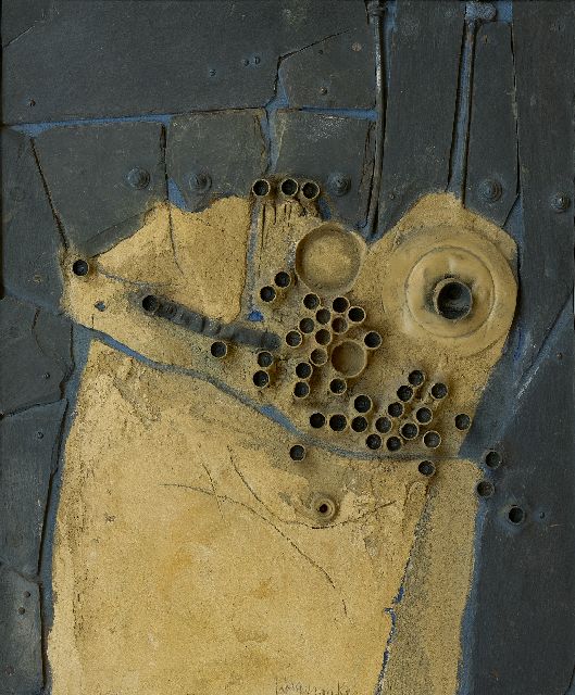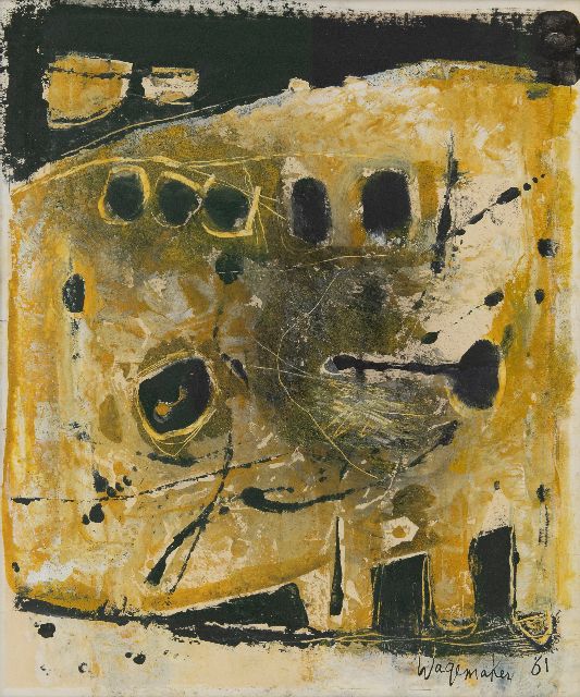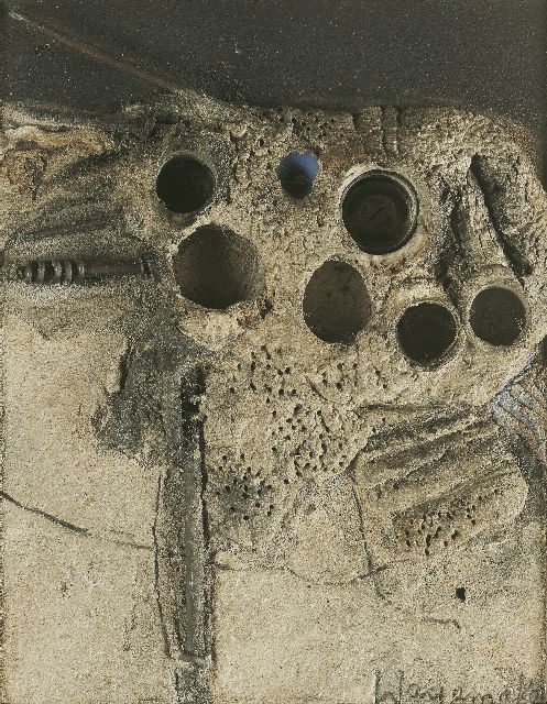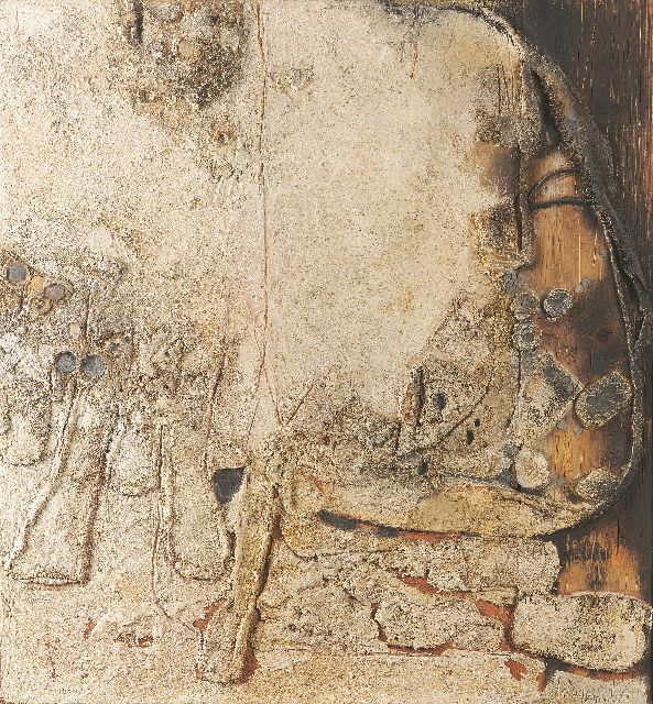 Der Materialmaler Jaap Wagemaker besuchte die Abteilung für Dekorative Kunst an der Kunstgewerbeschule seiner Heimatstadt Haarlem. Dies legte den Grundstein für sein Wissen über die verschiedenen Materialien, die er später in seinen Werken verwendete, und machte ihn zum wichtigsten niederländischen Vertreter der internationalen 'Materialmaler' der 1950er und 1960er Jahre.