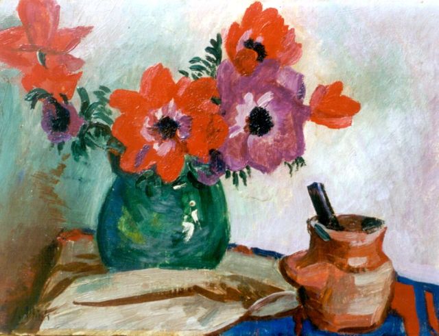 Stillleben mit Tabakdose, Pfeife und Weinflasche von Altink