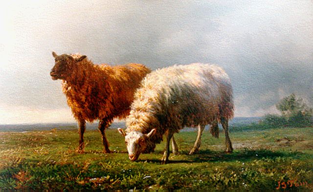 Jan Bedijs Tom | Cattle and sheep in a meadow, Öl auf Holz, 27,6 x 34,8 cm, signed l.r. with initials
