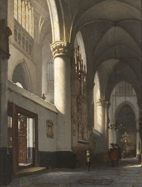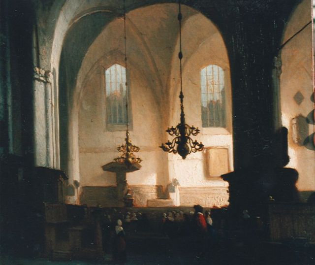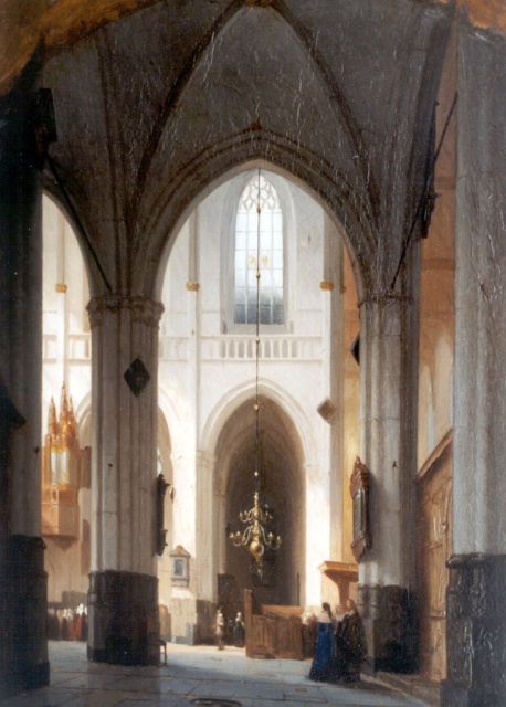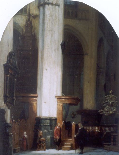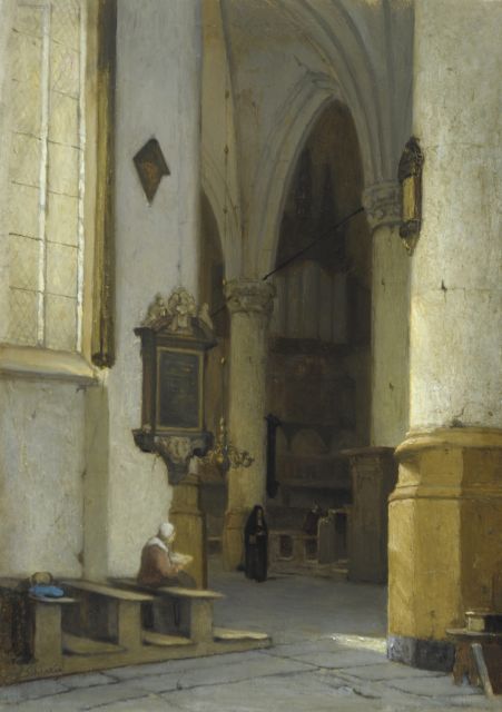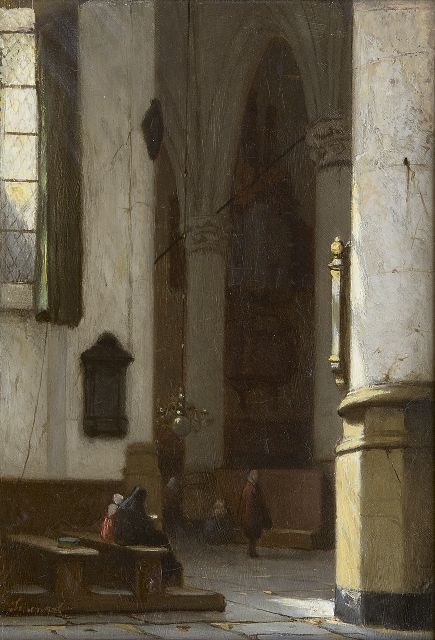 Jan Jacob Schenkel lebte und arbeitete in Amsterdam. Er wurde von den Historien- und Figurenmalern Valentijn Bing und Jan Braet von Uberfeldt unterrichtet, folgte seinen Lehrern jedoch nicht in ihrer Spezialisierung: Sein Werk besteht hauptsächlich aus Kircheninnenräumen. Er malte auch Stadtbilder. In der Zeit von 1851 bis 1899 stellte Schenkel seine Werke regelmäßig aus, in Rotterdam, Den Haag und Amsterdam.