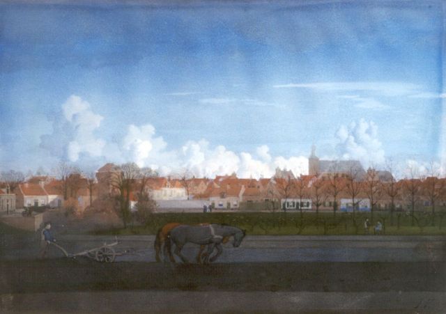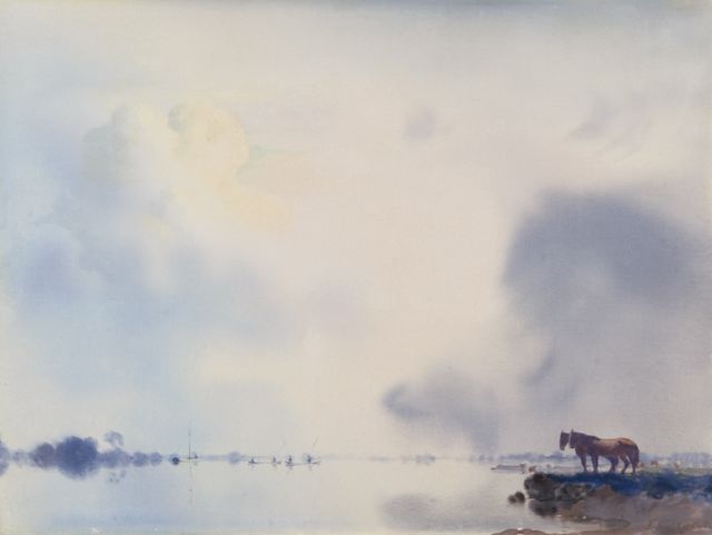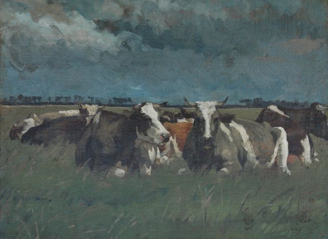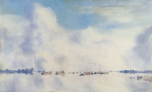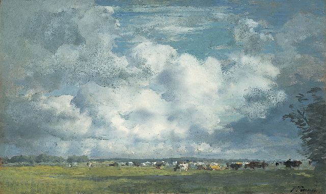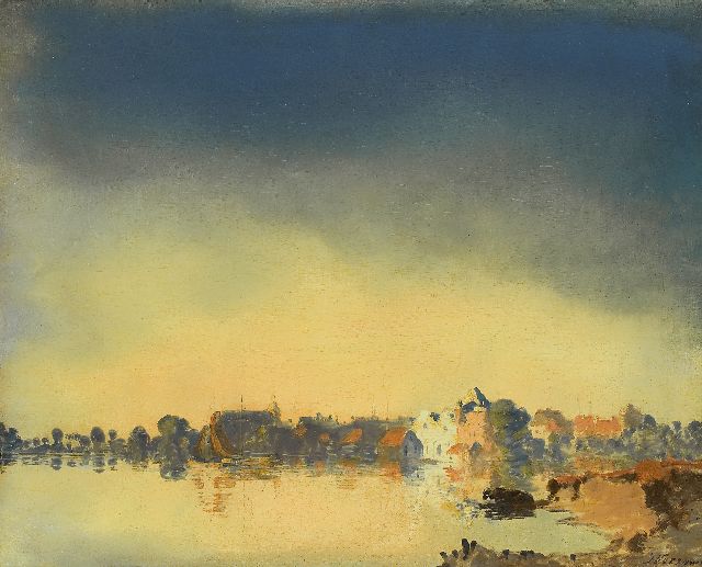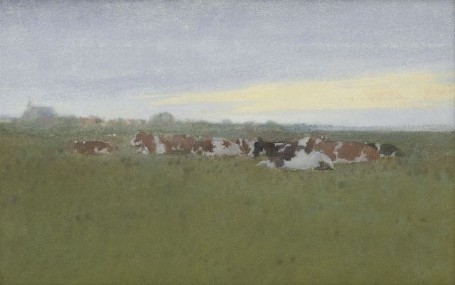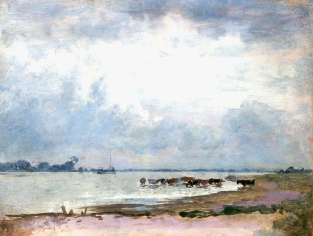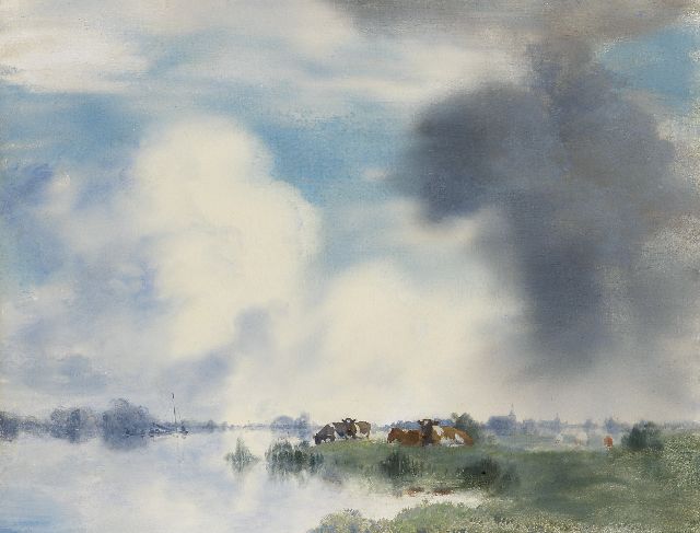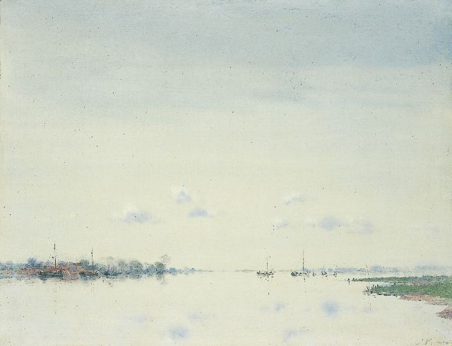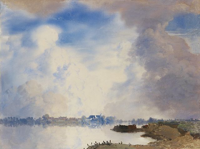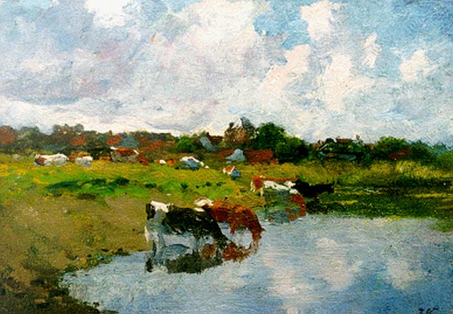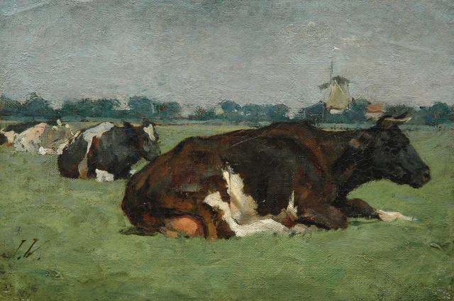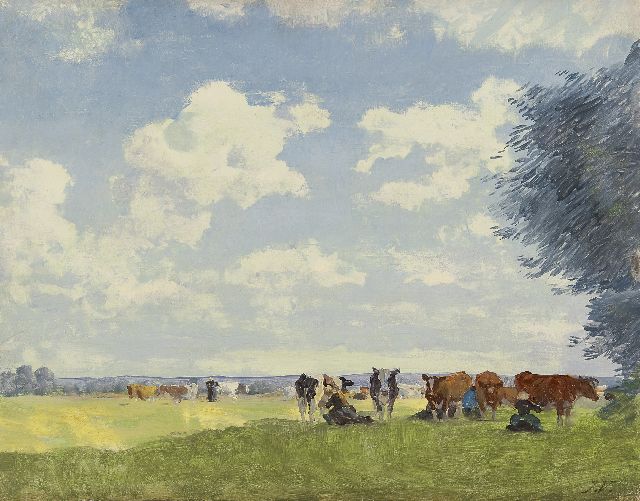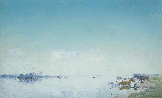 Jan Voerman sr. Ist am besten als Maler der 'ruhigen IJssel-Gesichter' bekannt. Als Sohn eines Kuhbauern in Kampen geboren, waren die Weiden sein Spielplatz. Nachdem Jan die Schule verlassen hatte, half er seinem Vater auf dem Bauernhof, war aber auch fasziniert von der Landschaft mit den Kühen und Pferden um ihn herum und begann zu zeichnen. Zusammen mit W.B. Sein Schulfreund besuchte Abendkurse an der City Drawing School in Kampen. 1876 wurden beide an der Rijksacademie in Amsterdam aufgenommen, wo sie unter anderem von August Allebé unterrichtet wurden. Voerman studierte an der Akademie mit einer Pause von einem Jahr, in der er Unterricht an der Antwerpener Akademie nahm. Als er 1883 die Rijksacademie verließ, ging er sofort - ohne Vertrag - zum Kunsthändler Buffa. Der Verkauf seiner Werke verlief gut und im Laufe der Jahre organisierte Buffa viele Ausstellungen, die ihm besonders nach 1897 großen Ruhm einbrachten.
