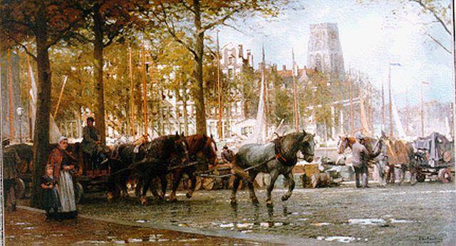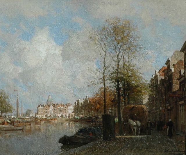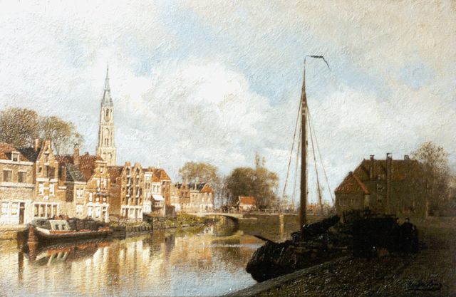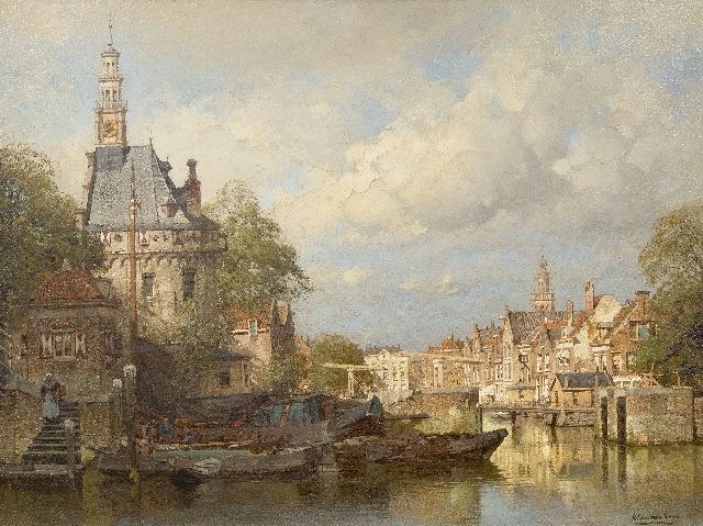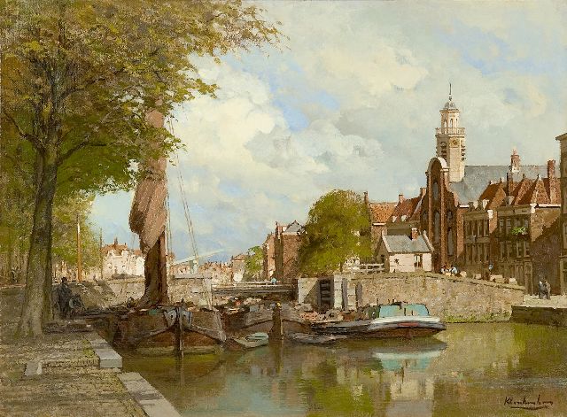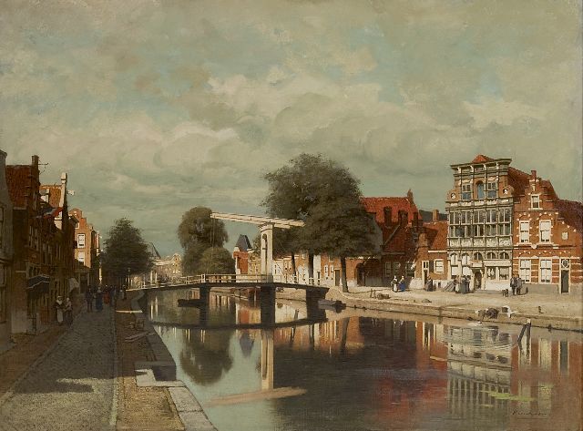 Johannes Christiaan Karel Klinkenberg spezialisierte sich auf das historische Stadtbild, oft sonnendurchflutet, dessen Fassaden sich im Wasser eines Kanals oder Binnenhafens spiegeln. Zeitgenossen bewunderten den Sonnenlichteffekt in seinen Gemälden: ein starkes, strahlendes Licht, das den weißen Sandstein und die roten Backsteine der altniederländischen Fassaden erhellte.