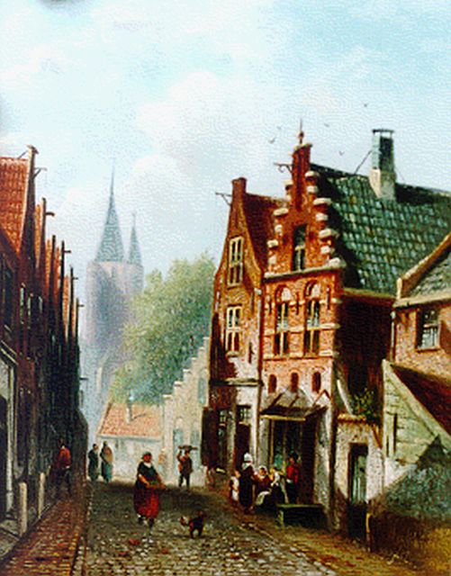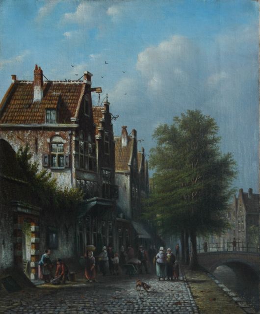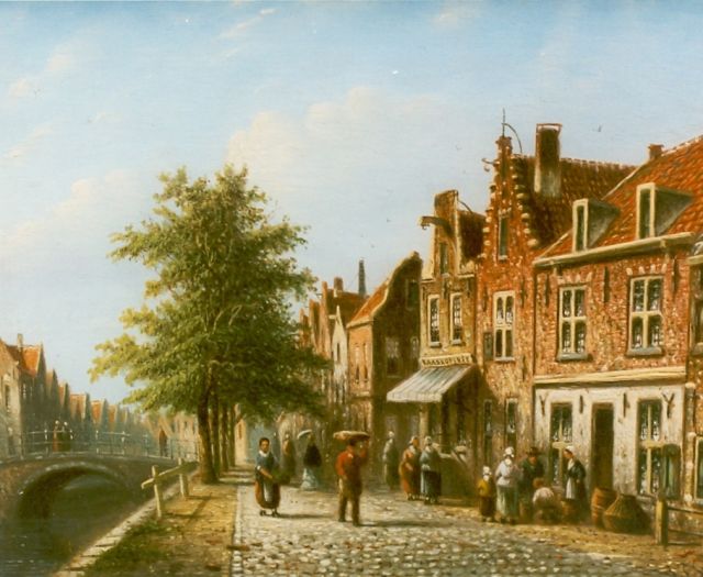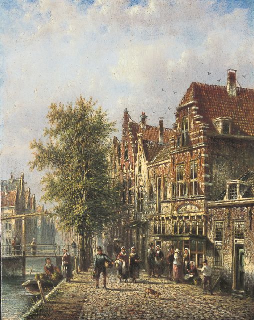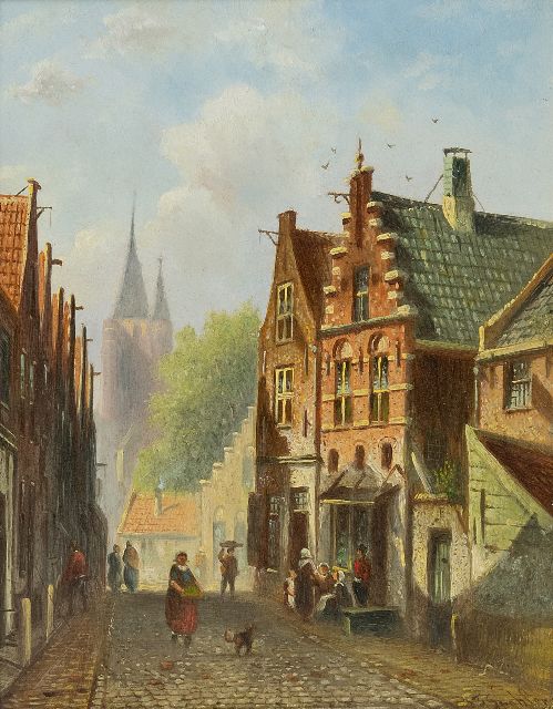 Johannes Franciscus Spohler war ein Außenseiter in seiner Malerfamilie. Sein Vater, Jan Jacob Spohler, starb, als er erst dreizehn Jahre alt war, sodass er – anders als sein 16 Jahre älterer Bruder Jan Jacob Coenraad – wahrscheinlich keinen Unterricht bei ihm hatte. Vielleicht war dieser Mangel an väterlichem malerischen Einfluss auch der Grund dafür, dass John Franciscus ein anderes Genre wählte als sein Vater und sein Bruder. Er war der einzige, der sich auf das niederländische Stadtbild spezialisierte, während sein Vater und sein Bruder Winterlandschaften und sommerliche Flussansichten malten. Sein großes Vorbild war das Werk des Amsterdamers Cornelis Springer: sonnige Straßen mit altniederländischen Häusern, bevölkert mit Figuren aller Art, geschäftig mit allerlei Aktivitäten. Teilweise aufgrund der Popularität von Springer hatte sich im 19. Jahrhundert sowohl in den Niederlanden als auch im Ausland ein guter Markt für Stadtansichten mit niederländischen historischen Gebäuden entwickelt.