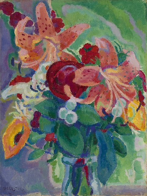 Das Werk von Leo Gestel (1881–1941) weist Einflüsse des Impressionismus, Luminismus, Fauvismus und Kubismus auf. Sein Talent garantiert jedoch eine einzigartige niederländische Version dieser internationalen Kunstrichtungen. Sein Leben lang bleibt er sich seiner Rolle als Pionier bewusst und sucht nach neuen Formen und Stilen, um die sichtbare Realität nach seinem Willen zu gestalten. In den Jahren 1900–1914 gehörte Gestel zusammen mit Jan Sluijters und Piet Mondriaan zu den ersten niederländischen Modernisten, die sich um 1904 in Paris der europäischen Avantgarde anschlossen. Im Salon des Independants lernte das Trio den Neoimpressionismus, den Fauvismus und den Luminismus kennen und führte zu Beginn des 20. Jahrhunderts in den Niederlanden die leuchtende Landschaft und den weiblichen Akt in provokanten, leuchtenden Farben ein. Inmitten der dunklen und traditionellen Leinwände, die damals die niederländische Kunstwelt dominierten, sorgten sie mit ihrer Farbexplosion für großes Aufsehen.