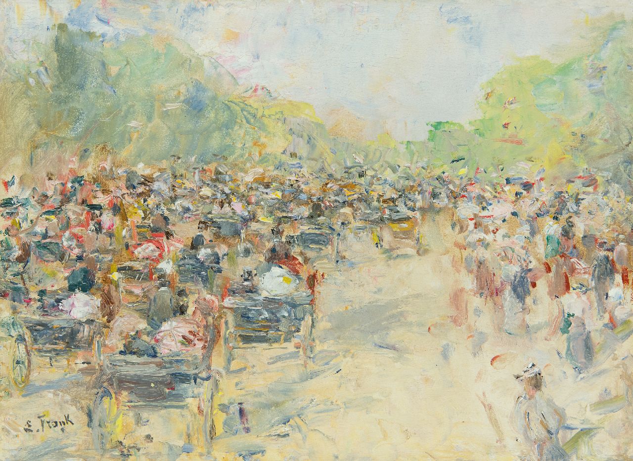 Belgischer Impressionist, Maler von hauptsächlich Landschaften und lebhaften, atmosphärischen Stadtansichten von Paris und Brüssel. Seine Gemälde sind eine perfekte Kombination aus belgischem und französischem Impressionismus. Letzteren hatte er in Frankreich kennengelernt, wo er in Paris Schüler des Landschaftsmalers François Daubigny gewesen sein soll. Er hätte Manet auch persönlich gekannt. Schon in jungen Jahren ein Befürworter des Pleinairismus, entwickelte Frank seinen eigenen Stil, als er in den 1880er Jahren im Freien arbeitete. Danach arbeitete er viel in Tervueren, besuchte aber auch regelmäßig die belgische Küste und die Niederlande. Während des Ersten Weltkriegs lebte er in Frankreich und Spanien.
