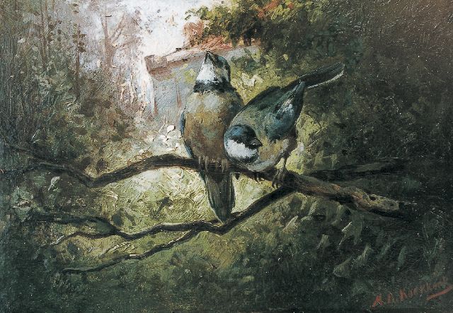 Marinus Adrianus Koekkoek II | Bluetits, Öl auf Holz, 13,5 x 19,7 cm, signed l.r.