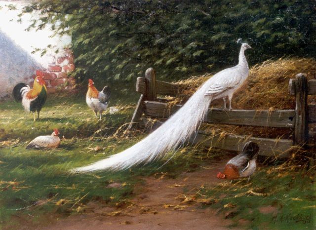 Marinus Adrianus Koekkoek II | A peacock and chickens on a yard, Öl auf Leinwand, 28,4 x 38,4 cm, signed l.r. und dated 1912