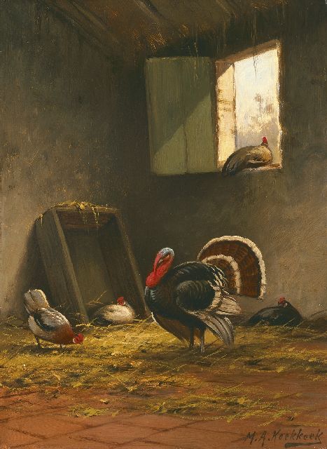Marinus Adrianus Koekkoek II | Poultry in a stable, Öl auf Holz, 36,0 x 26,5 cm, signed l.r.