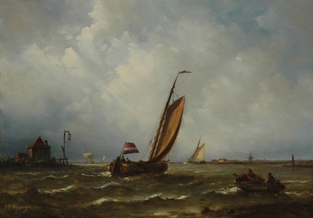 Nicolaas Martinus Wijdoogen | A Dutch sailing vessel putting out to sea, Öl auf Holz, 26,0 x 37,0 cm, signed l.l. und painted 1891