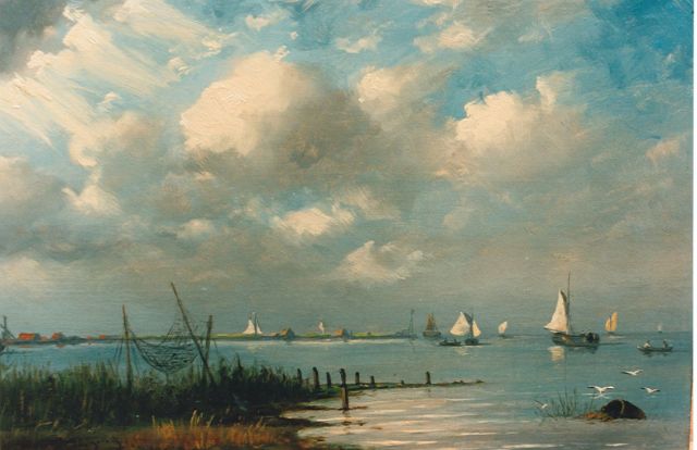 Nicolaas Martinus Wijdoogen | Shipping on the Zuiderzee, Öl auf Holz, 23,5 x 33,5 cm, signed l.l.