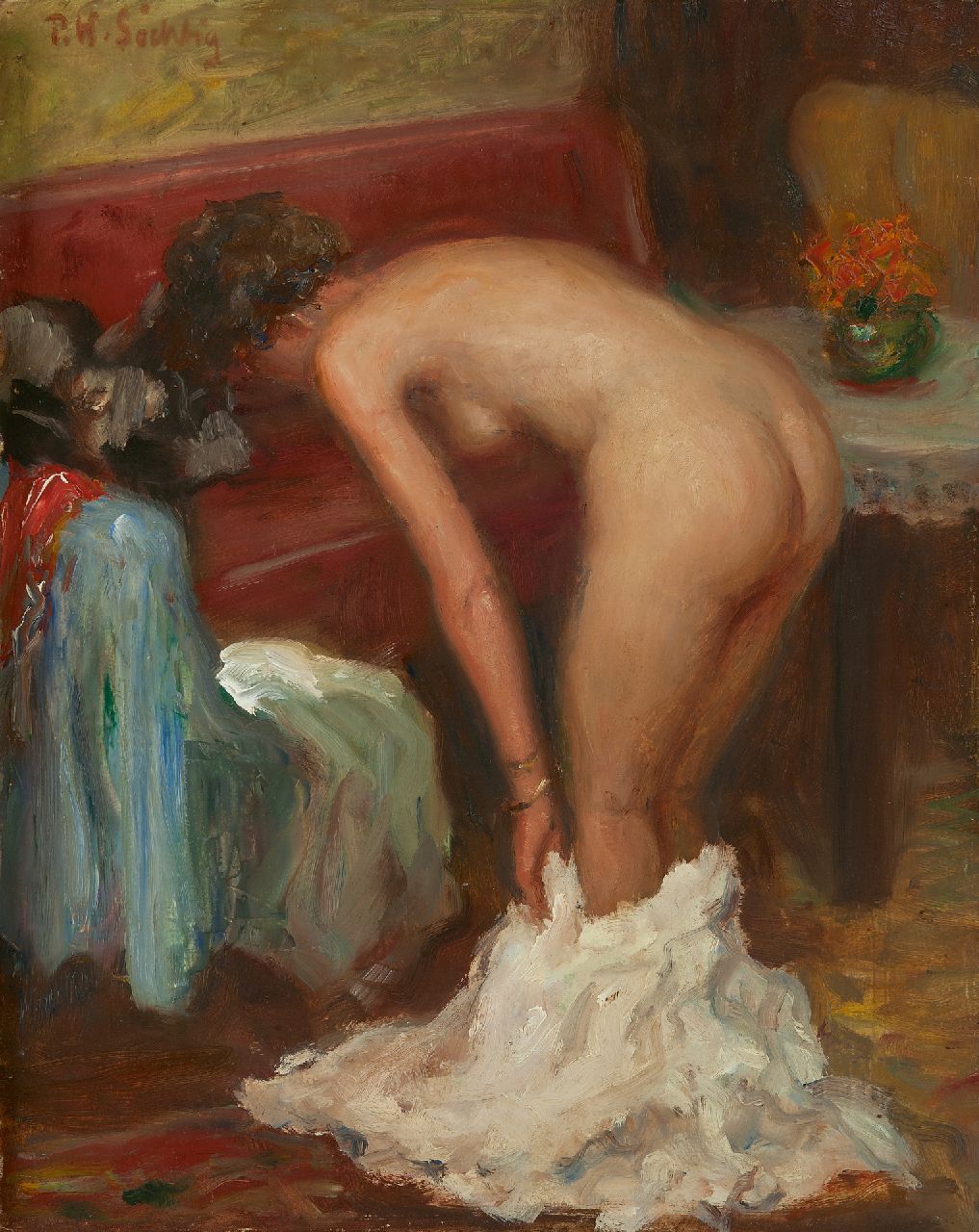 Der im Jahre 1919 geborene Paul Werner Söchtig gehört zu den spät- impressionistischen Malern, aber er benutzt diesen Stil mit der Frische und Spontanität der ersten Künstler dieser Strömung. Er malt Stadtansichten von Düsseldorf, Stilleben und Innenräume mit Figuren und Akten in warmen, anheimelnden Farben. Das schnelle aufzeichnen seiner ersten Eindrücke ist wichtig für ihn, namentlich in seinen Landschaften; die Wiesen und Baumgruppen des Niederrheines sind dabei seine beliebtesten Themen. Der Maler strebt in seinen Werken nach Harmonie und Schönheit, auch als er Mitte 50er Jahre einige Zeit zur Abstraktion übergeht.