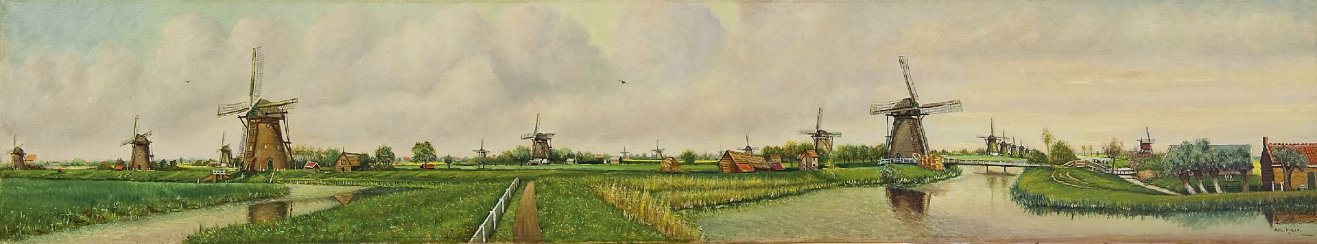 A.H. van Rosse Kunstwerk • Gemälde • zuvor zu verkaufen A panoramic view of the windmills at Kinderdijk