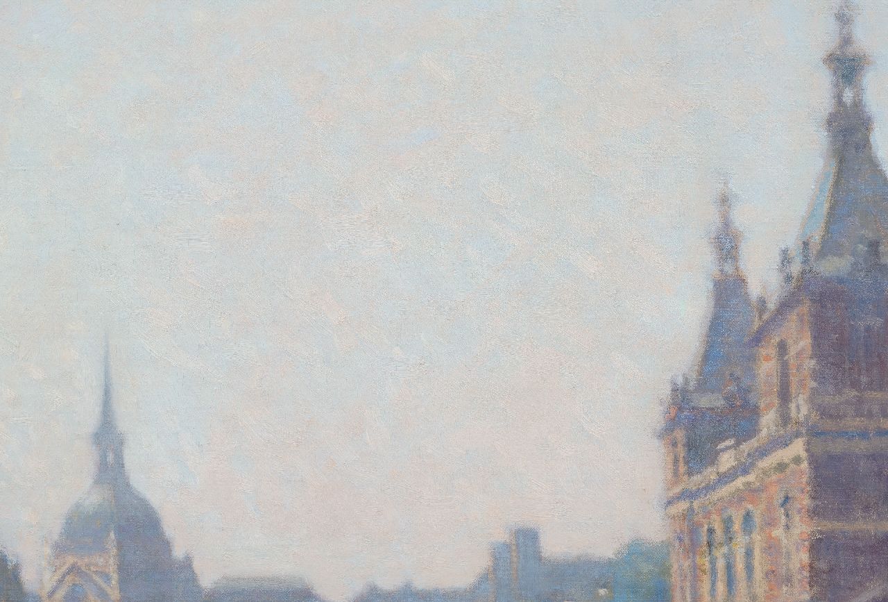 Die Stadt Amsterdam wird traditionell von Malern geliebt. Zu Beginn des 19. Jahrhunderts war unsere Hauptstadt der Mittelpunkt des romantischen Stadtbildes. Die romantischen Maler liebten die schönen Gebäude und malerischen Kanäle. Später zeigten die Amsterdamer Impressionisten in ihren Werken vor allem die Dynamik der Stadt. Anthonie Pieter Schotel hatte eine große Vorliebe für das Einfangen von Fluss- und Meereslandschaften. Es sind vor allem zarte Grautöne, die er in seinen Wasserlandschaften verwendet. Um 1950 malte er den Leidseplein an einem Ort ganz oben im Nachtclub „Extase“ und zeigt die Amsterdamer Welt durch einen sonnigen Nebelschleier.